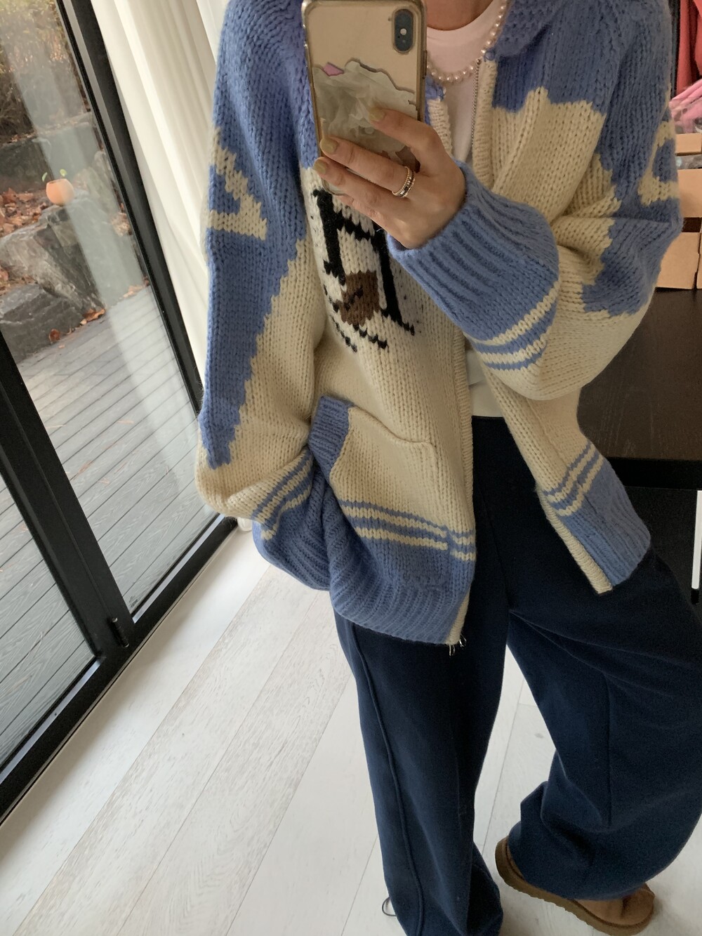 rugby zip-up cardigan *(3color)