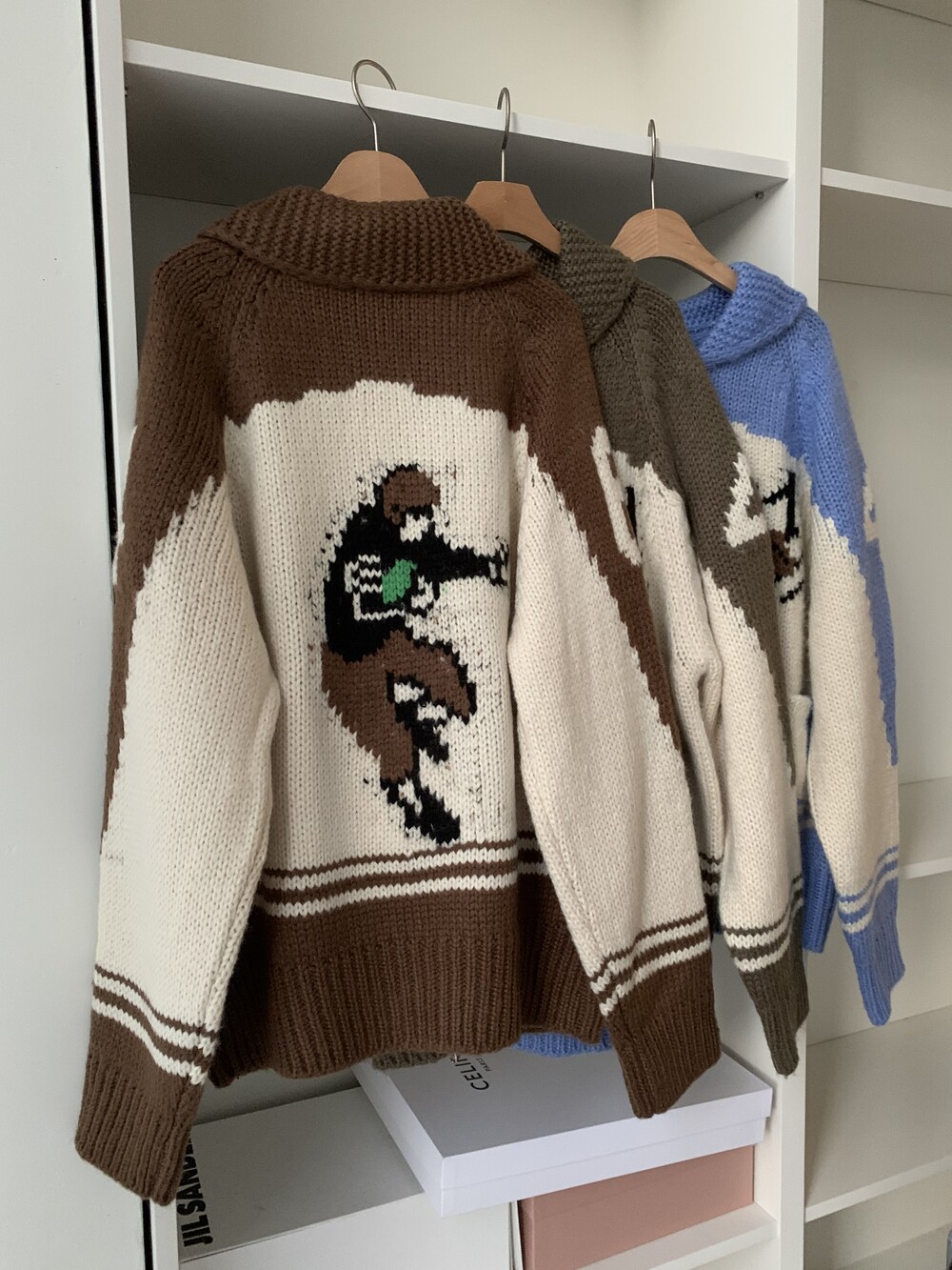 sky blue / khaki / brown