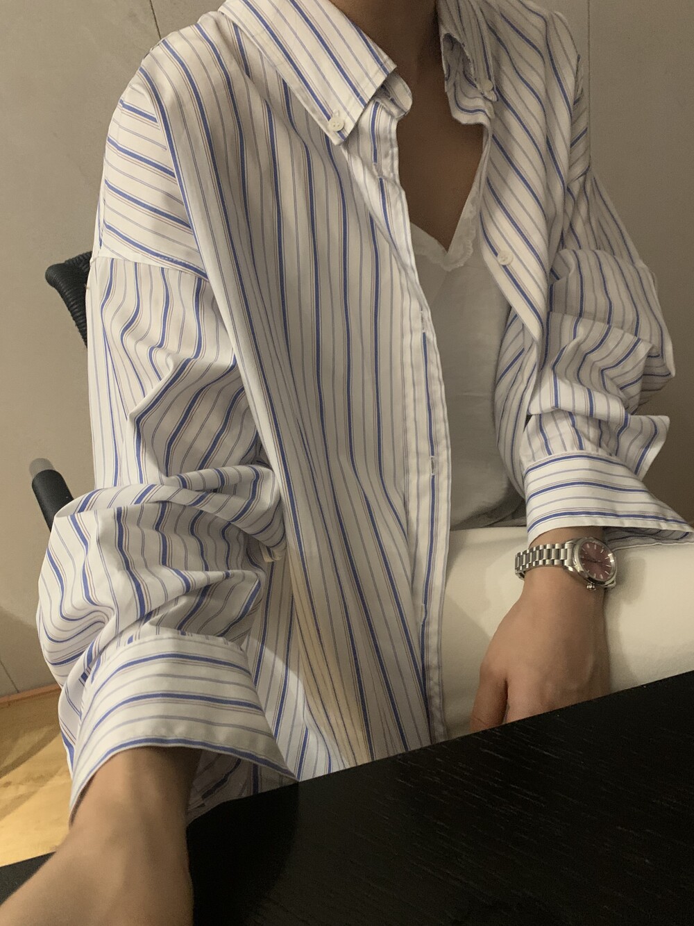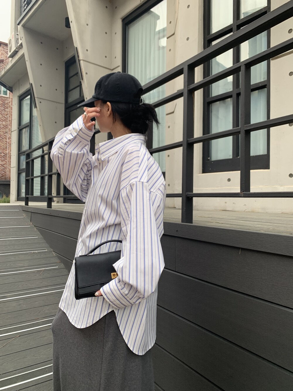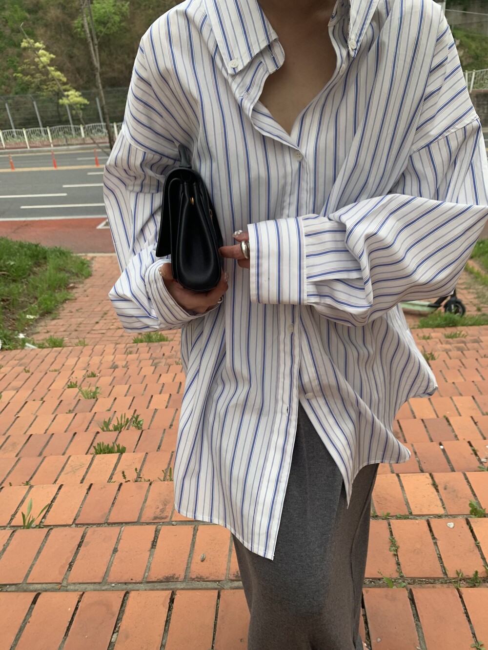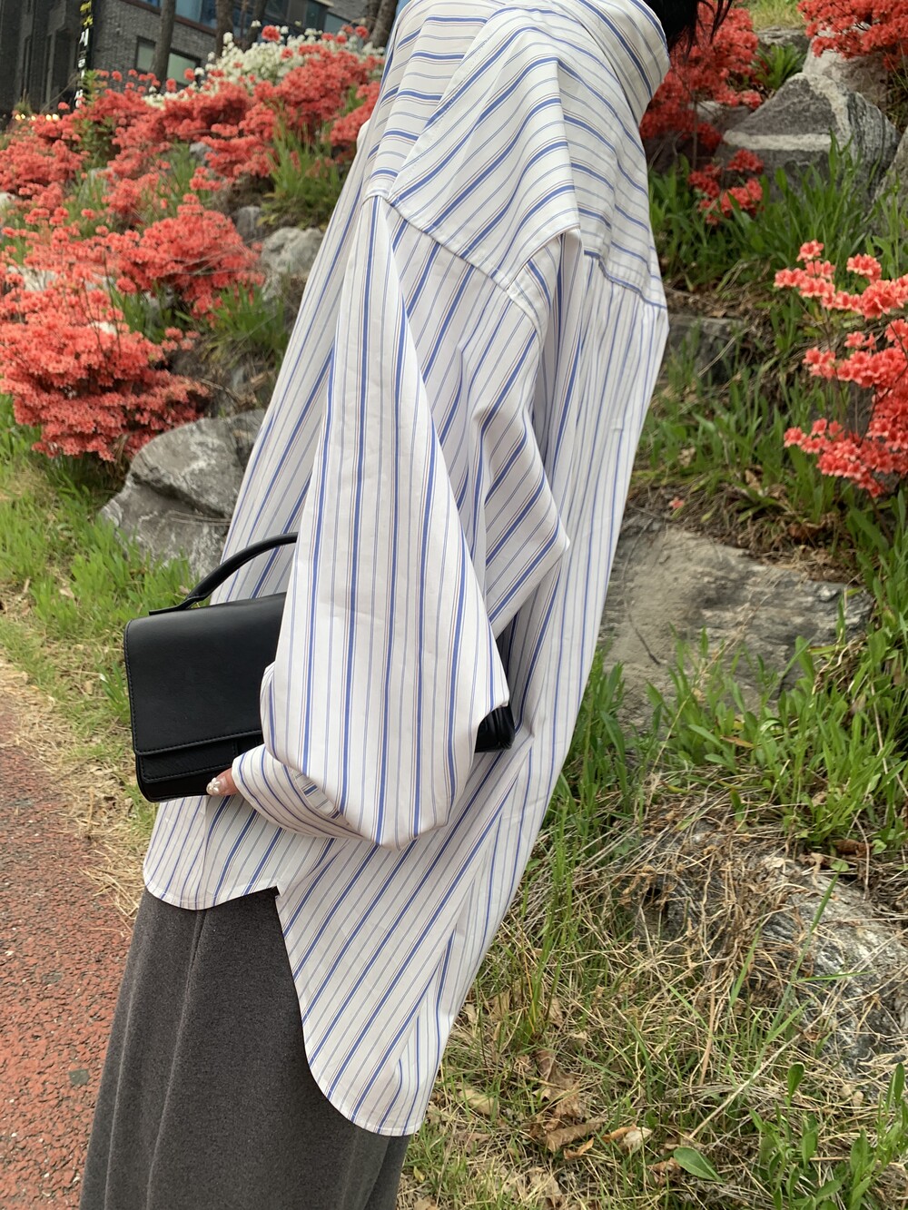 오버사이즈 스트라이프 셔츠를 소개합니다.