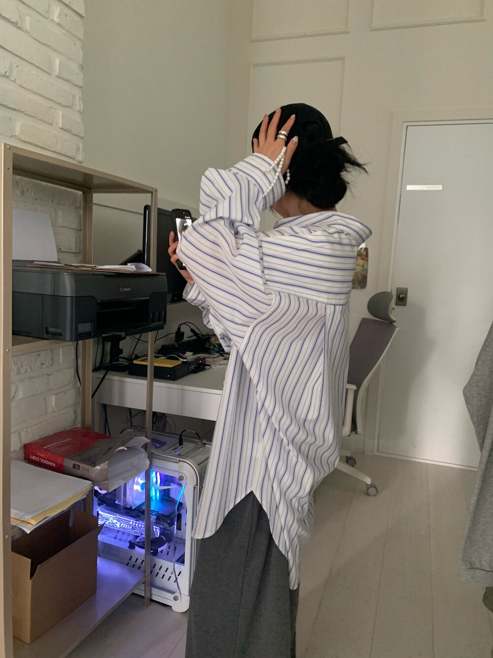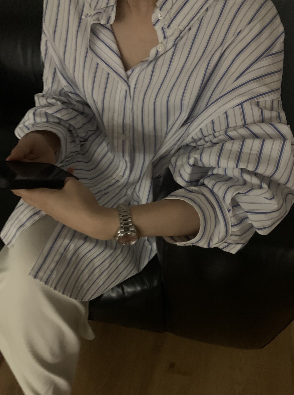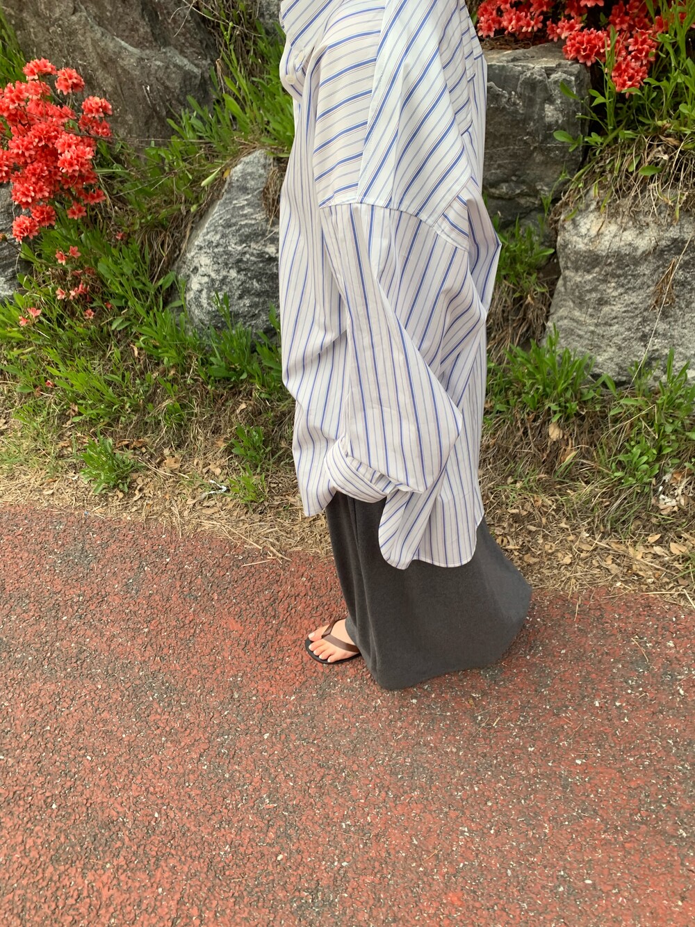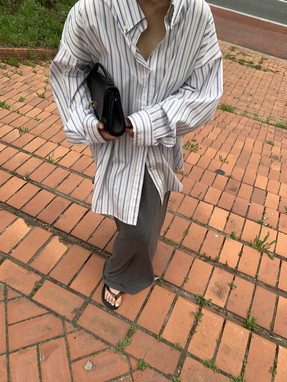 오버사이즈 스트라이프 셔츠를 소개합니다.