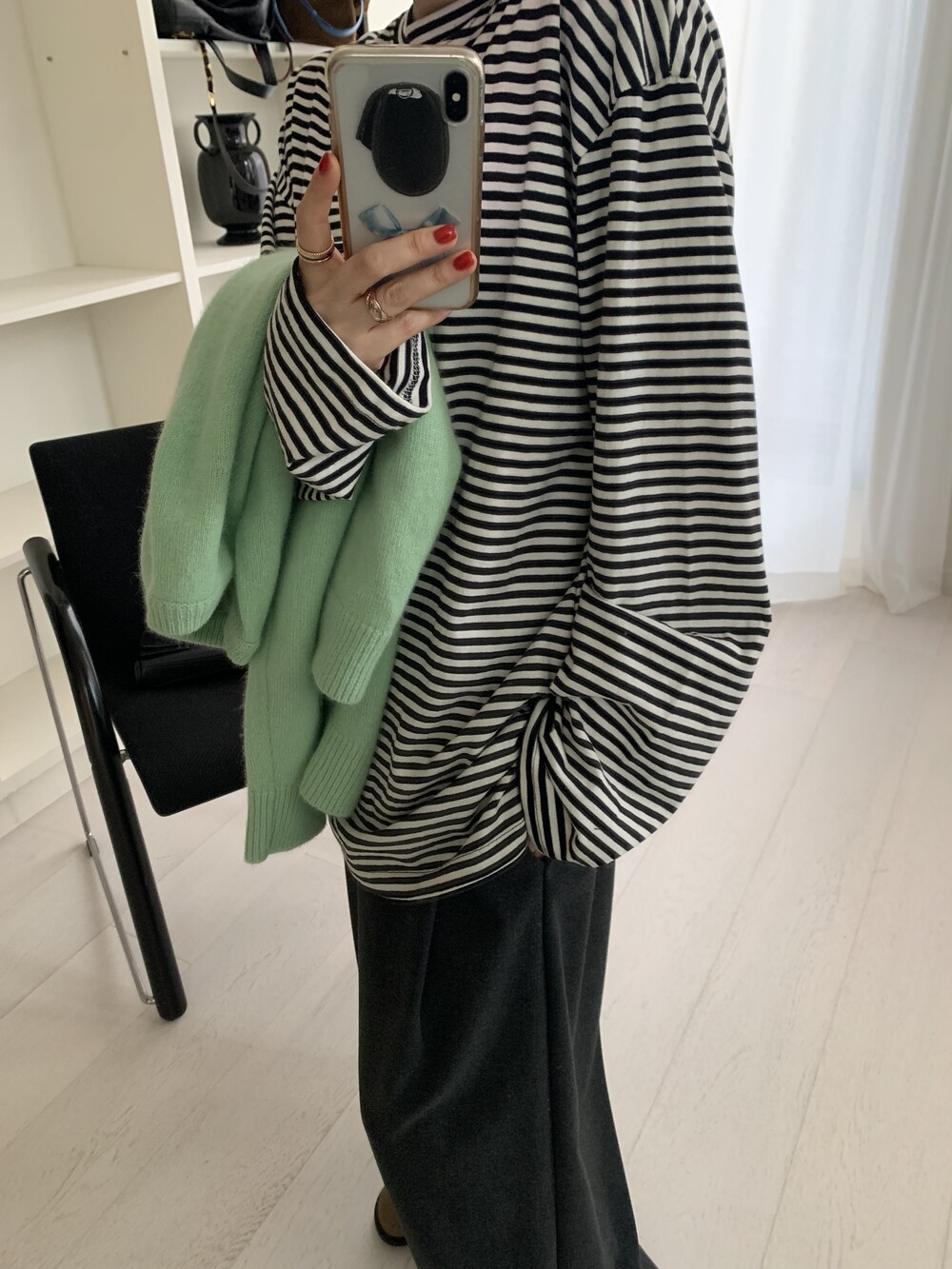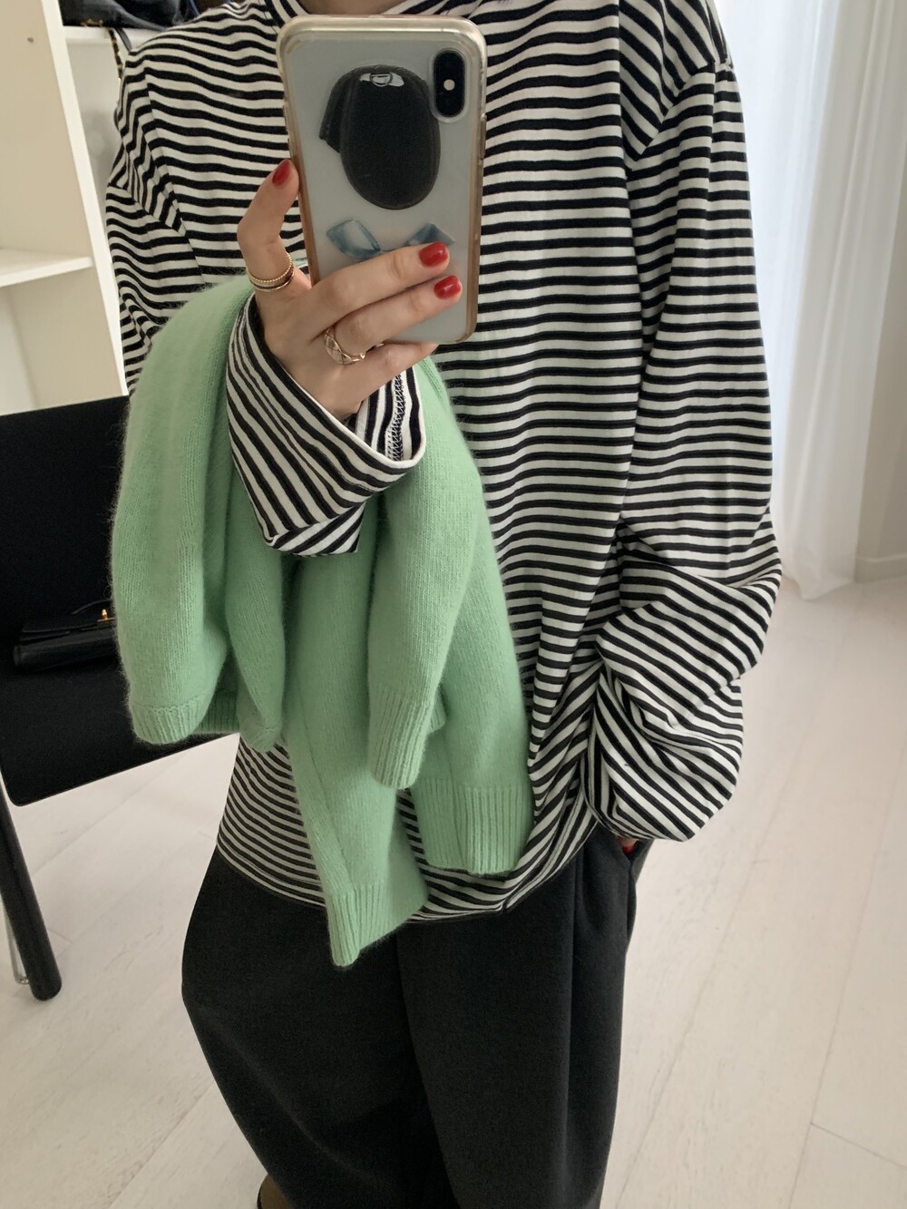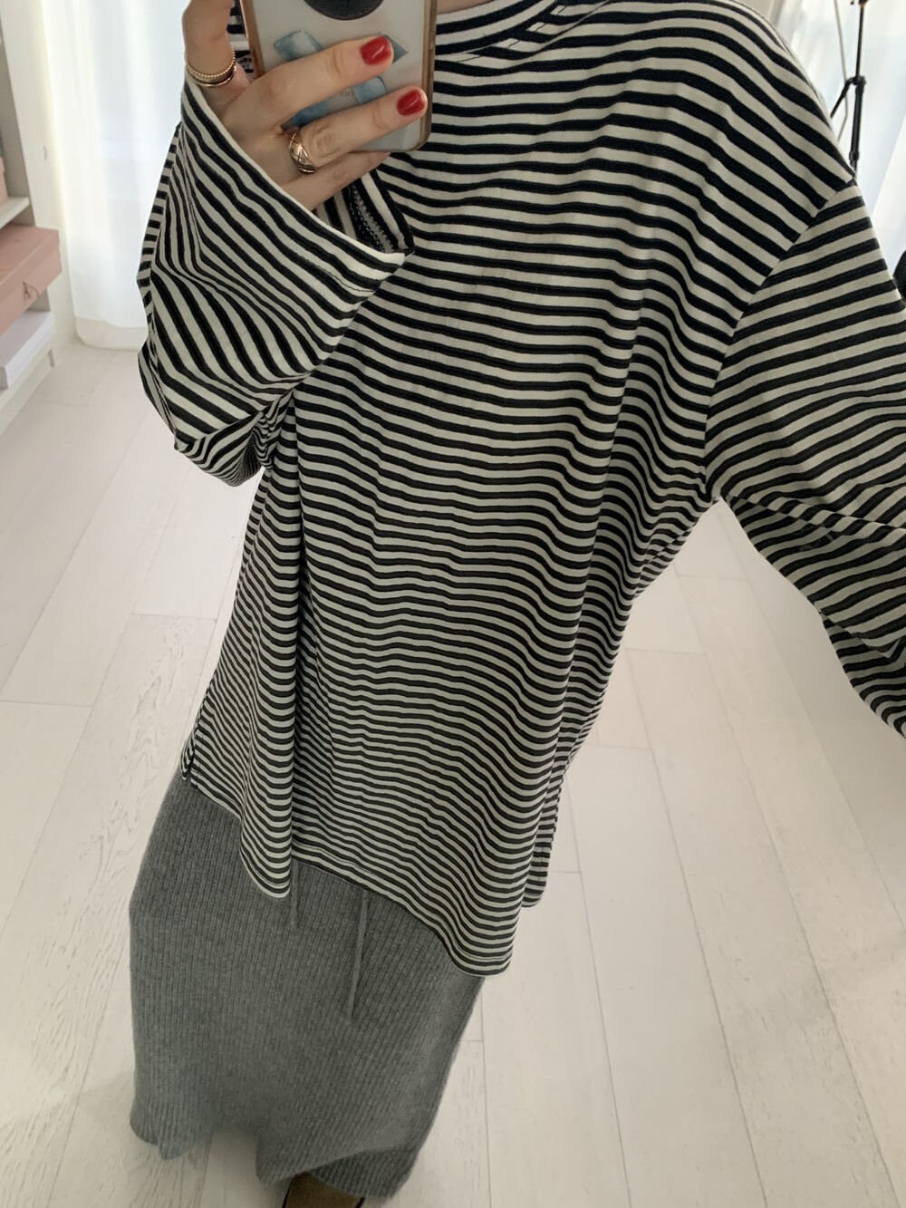 stripe sleeve tee *(2color)