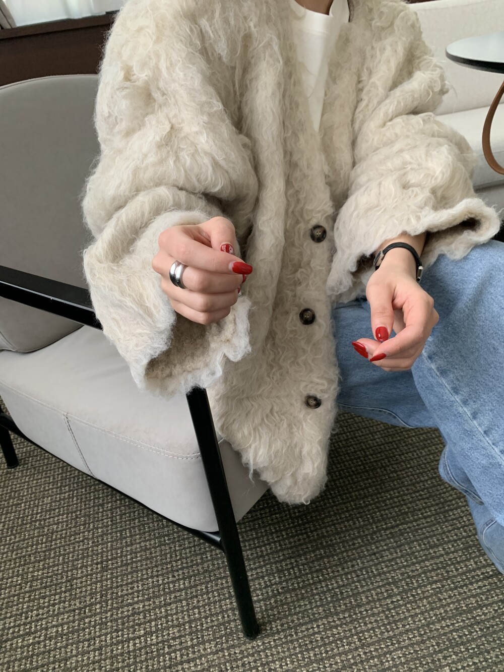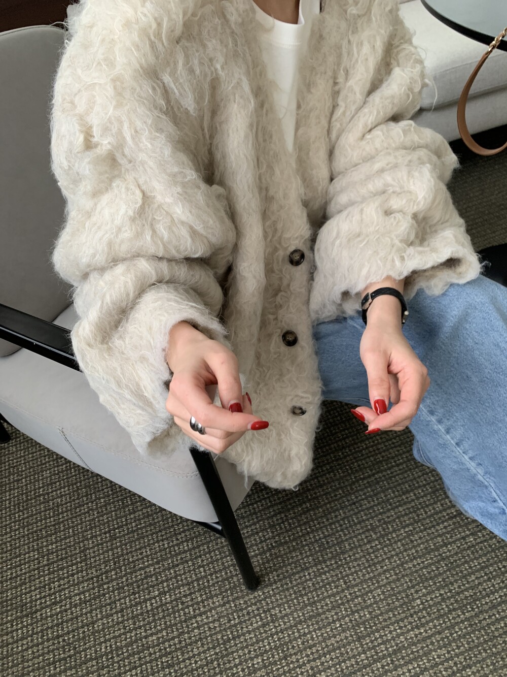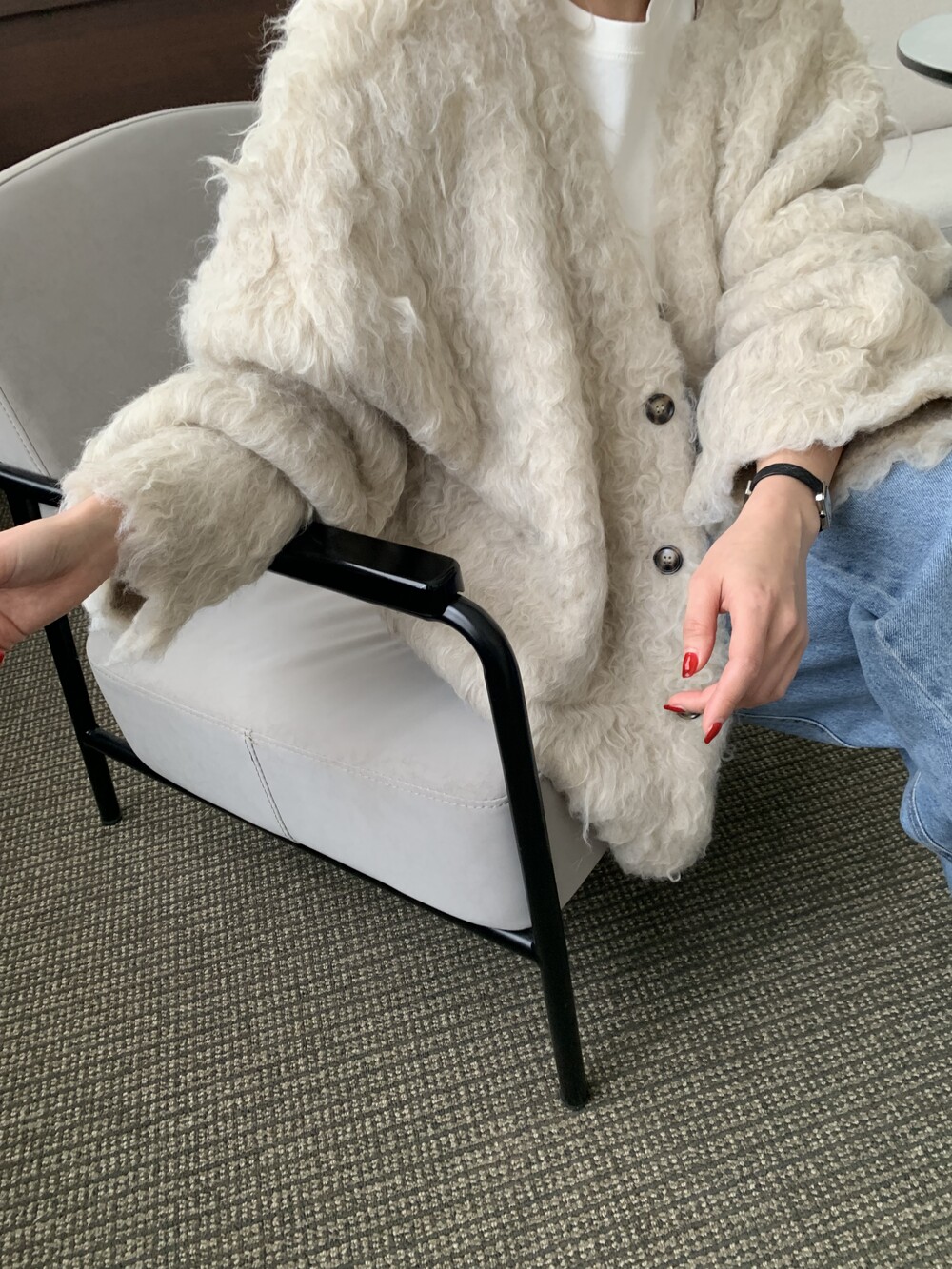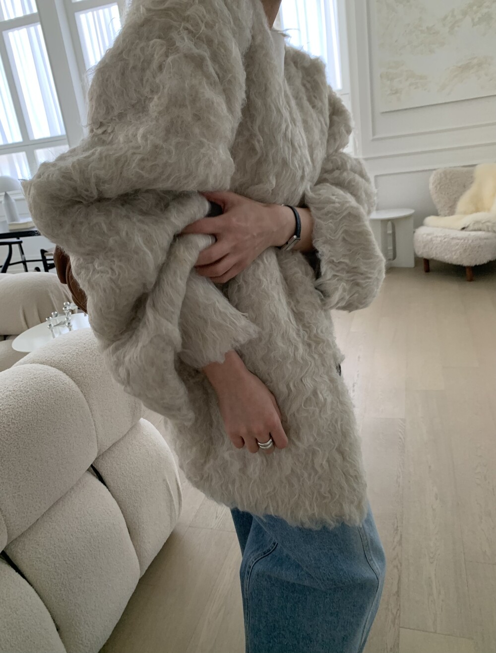 over handmade wool fur jacket (warm ivory)