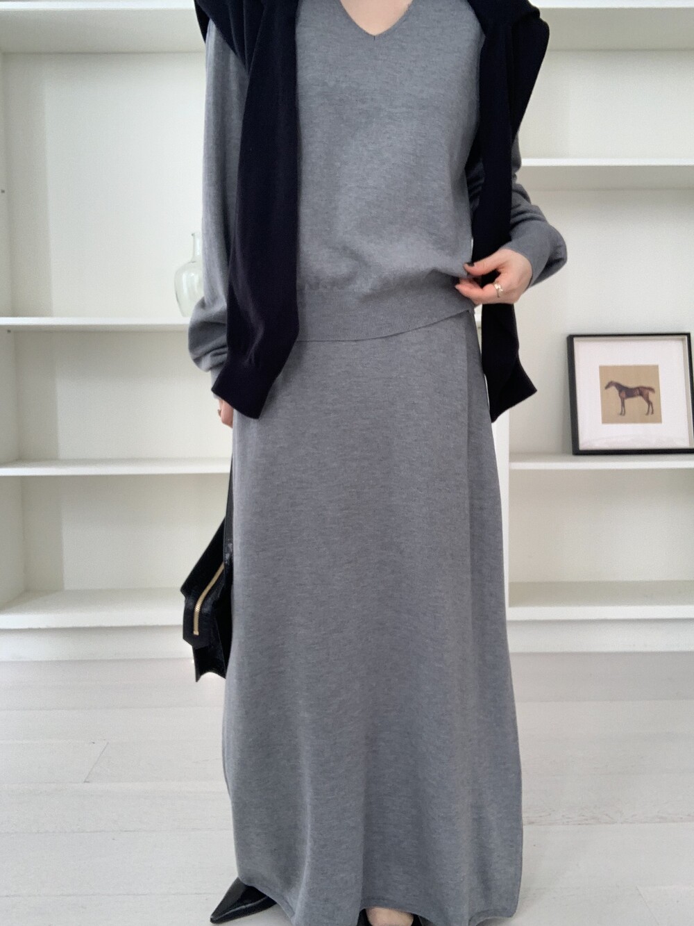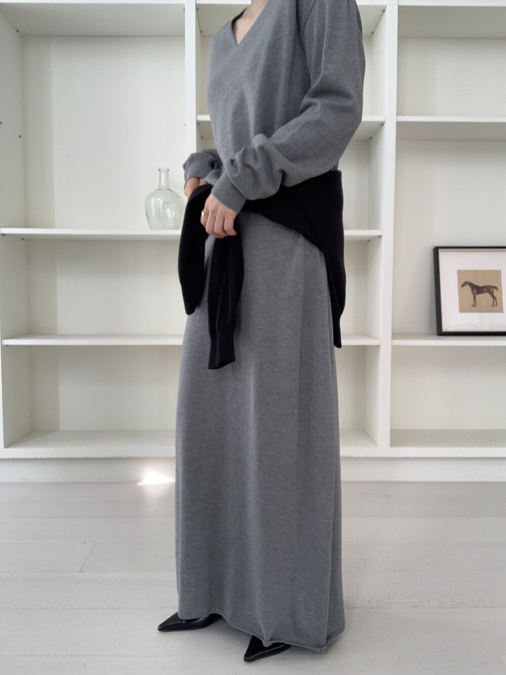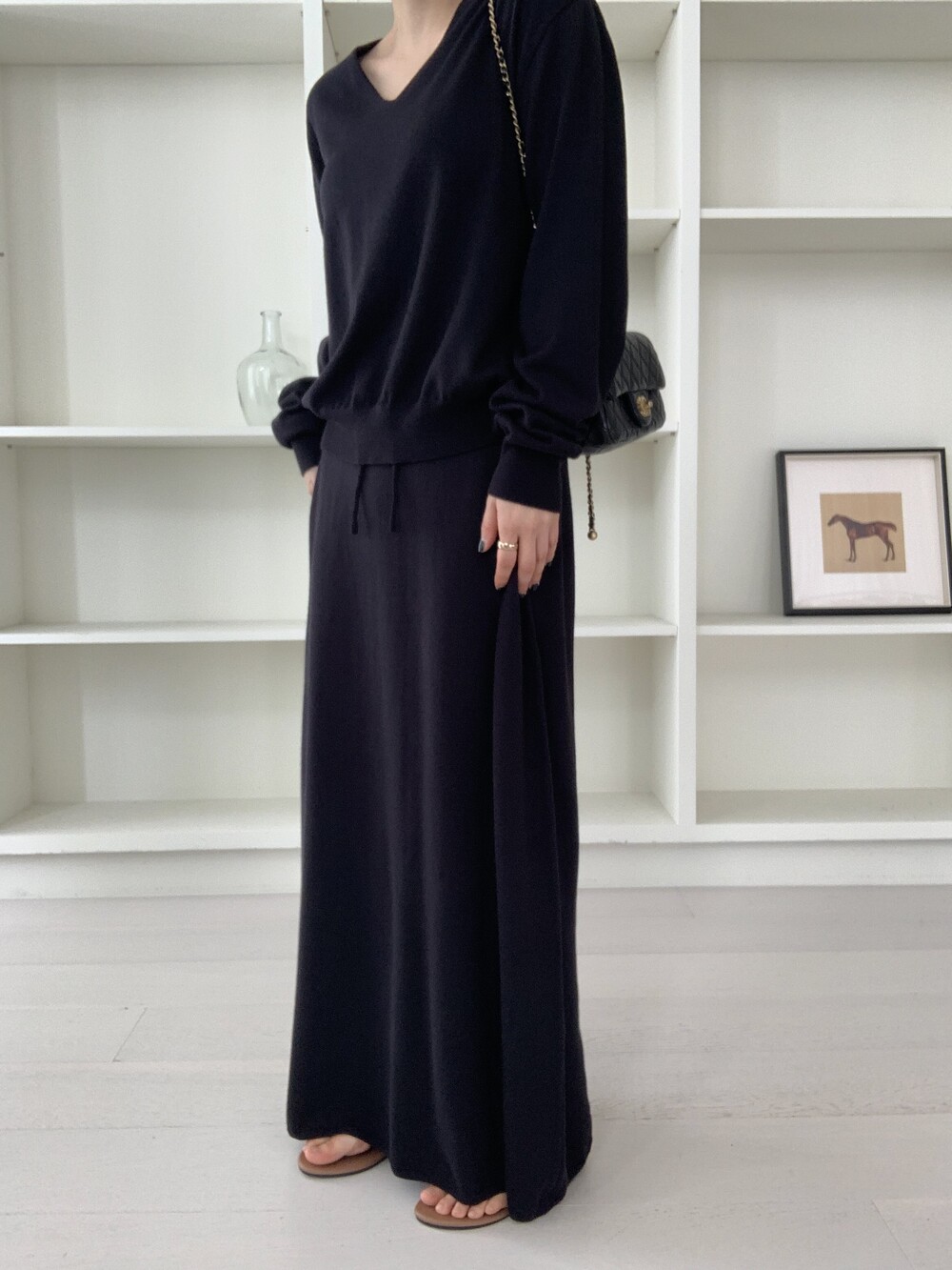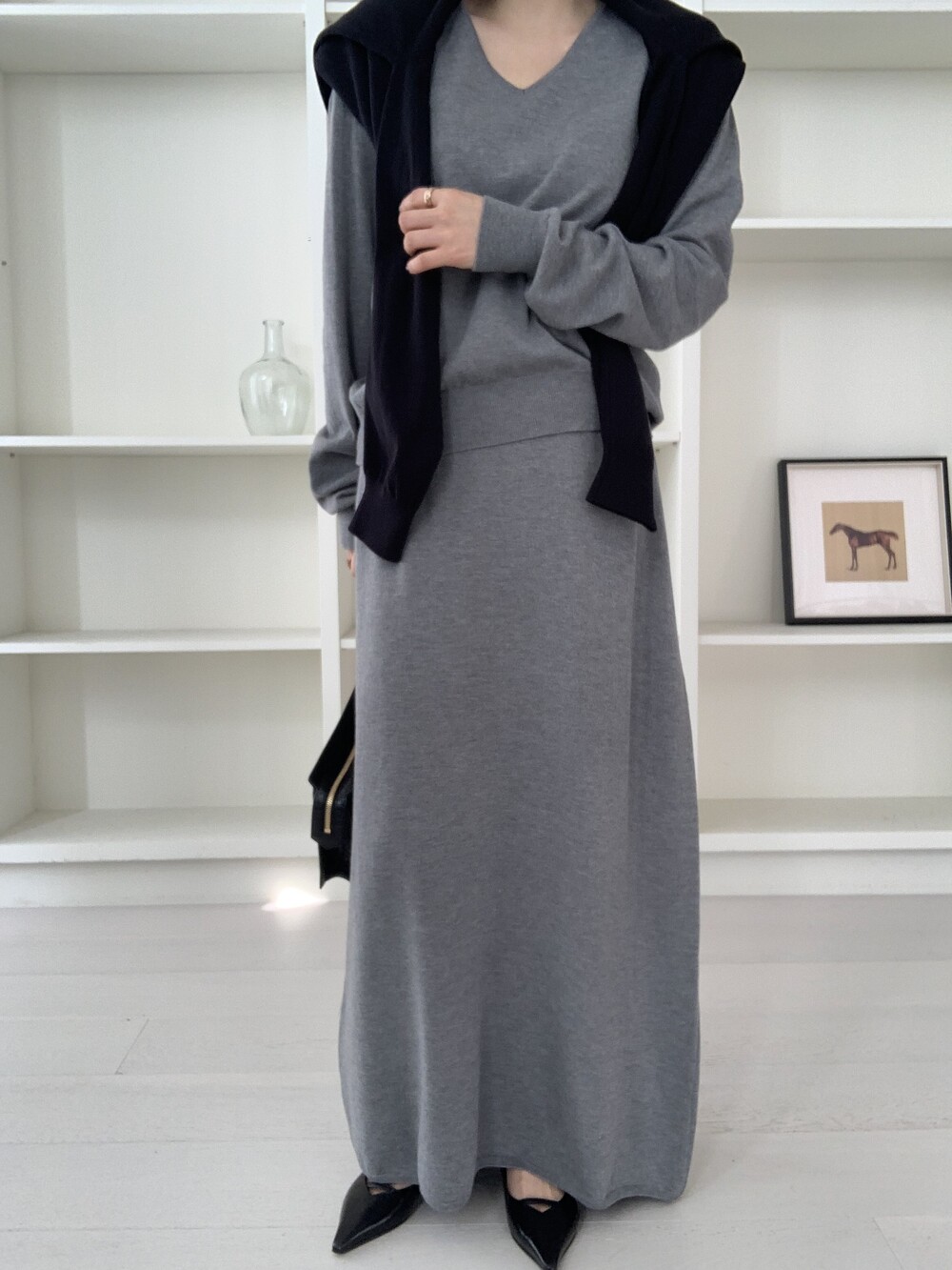 flan knit maxi sk *(3color)