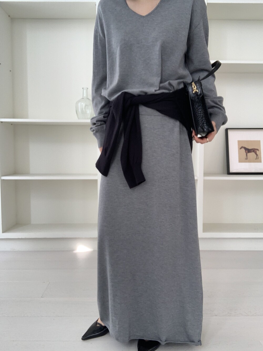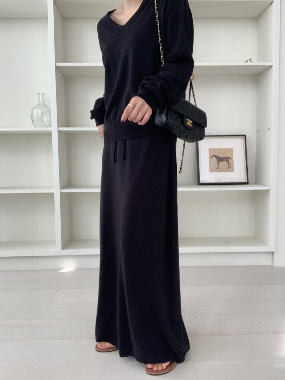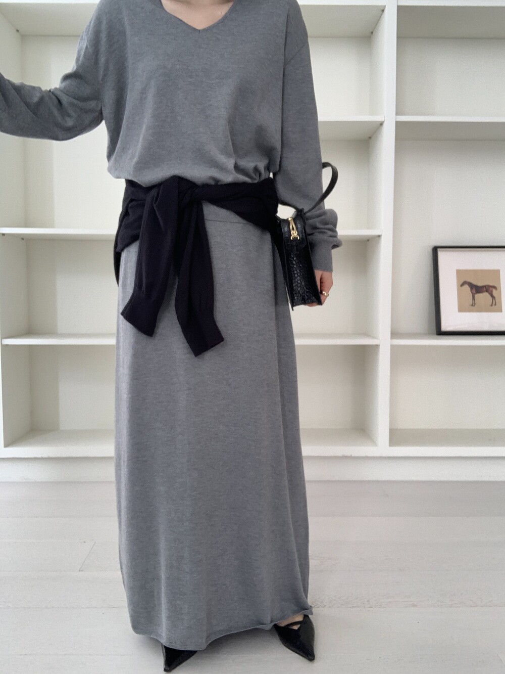 flan knit maxi sk *(3color)