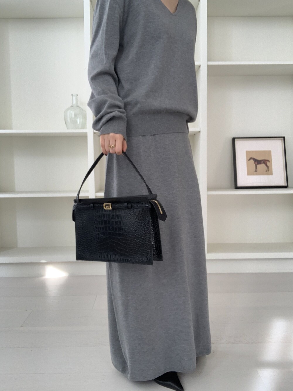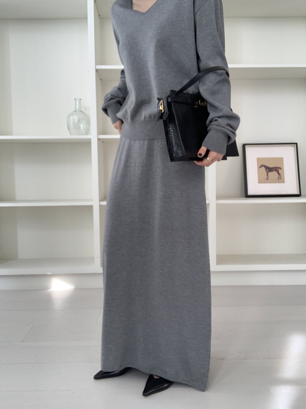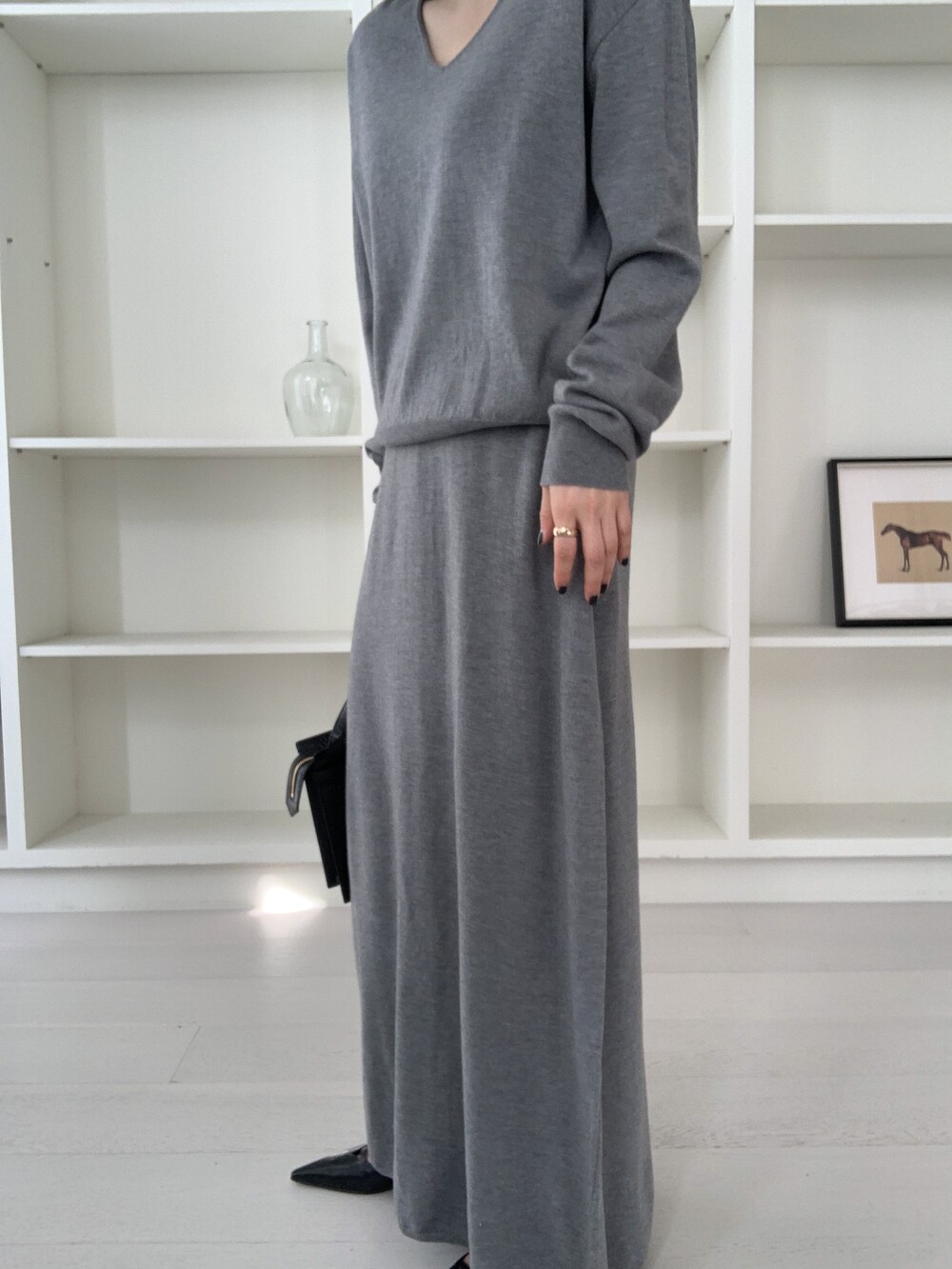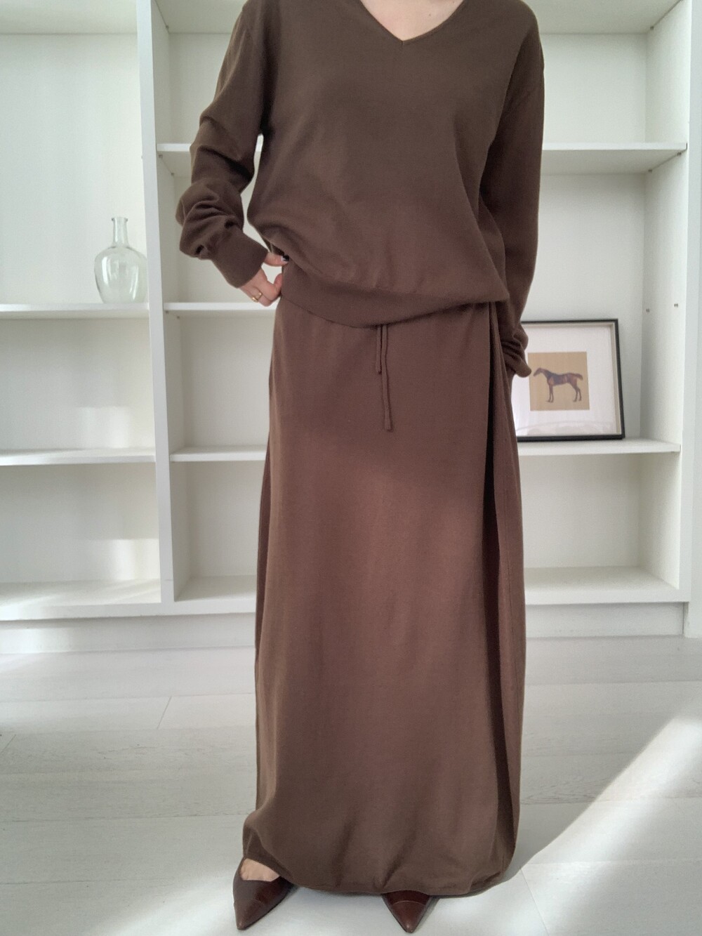 flan knit maxi sk *(3color)