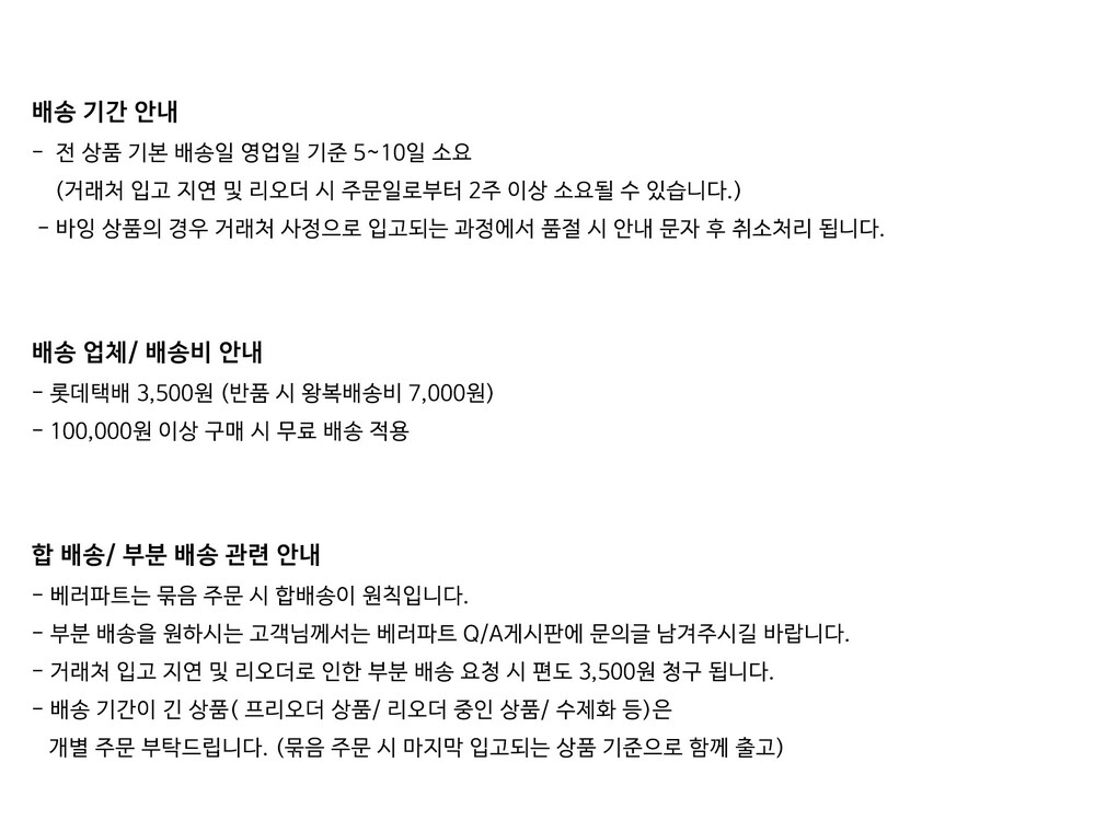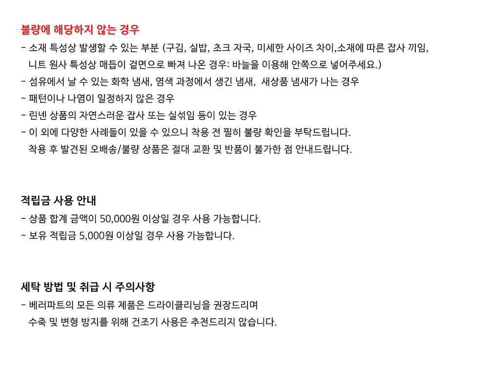(베러파트의 모든 의류 첫 세탁은 드라이클리닝을 권장합니다.)