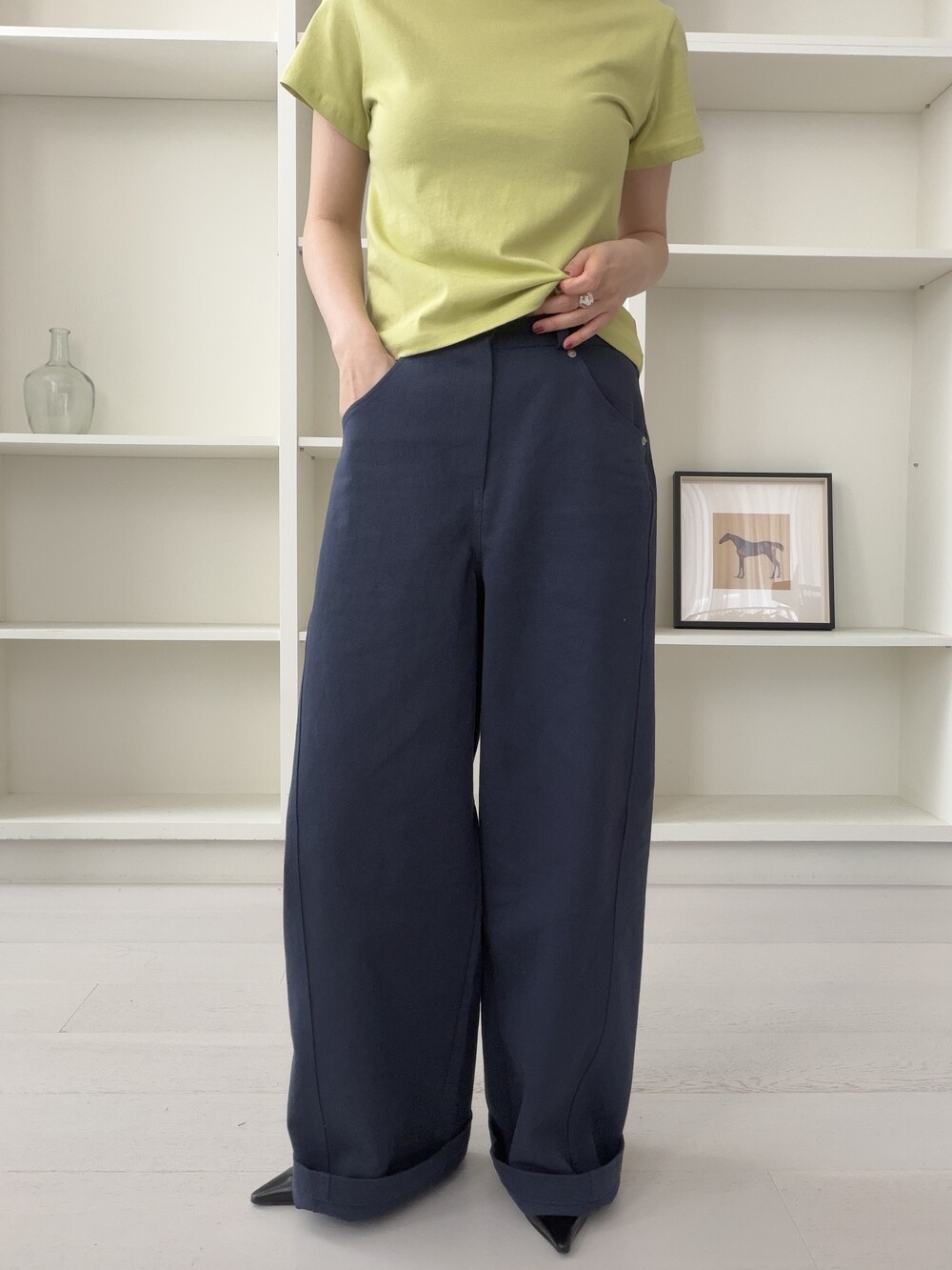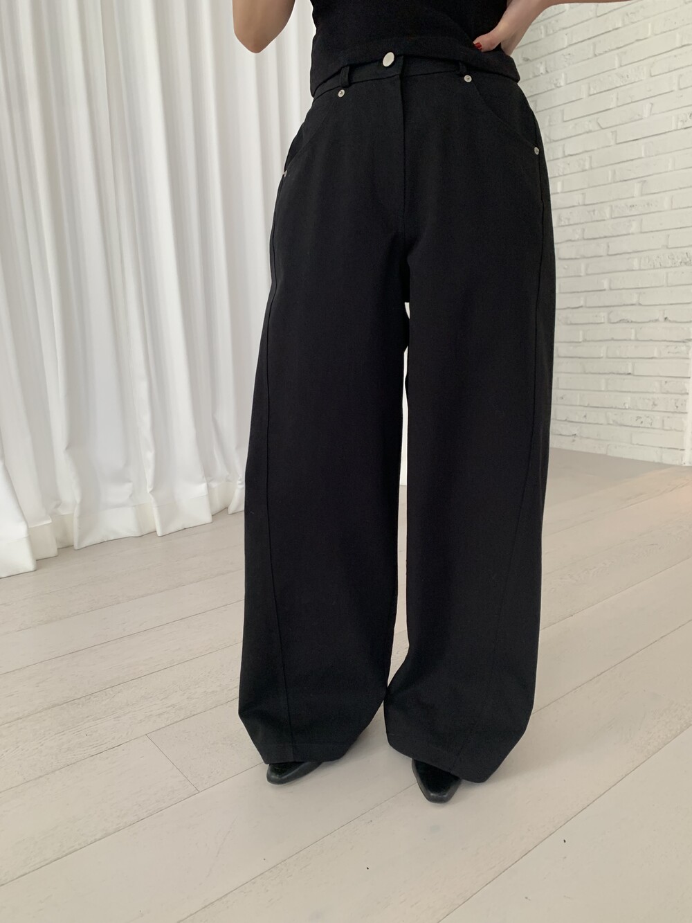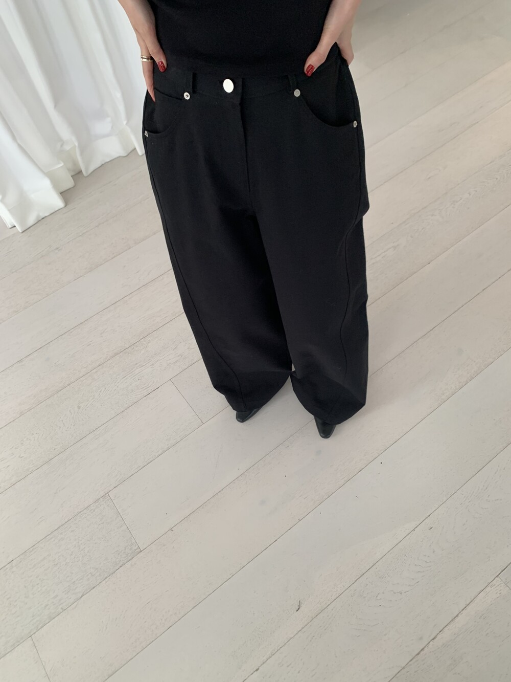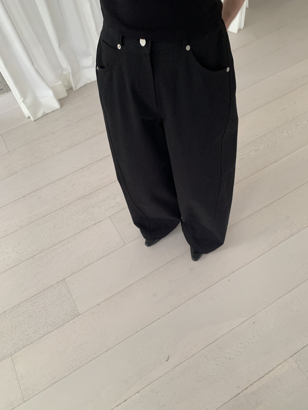 FREE 총장 102 허리(뒷밴딩) 31~41 힙 54 밑위 36 허벅지 34