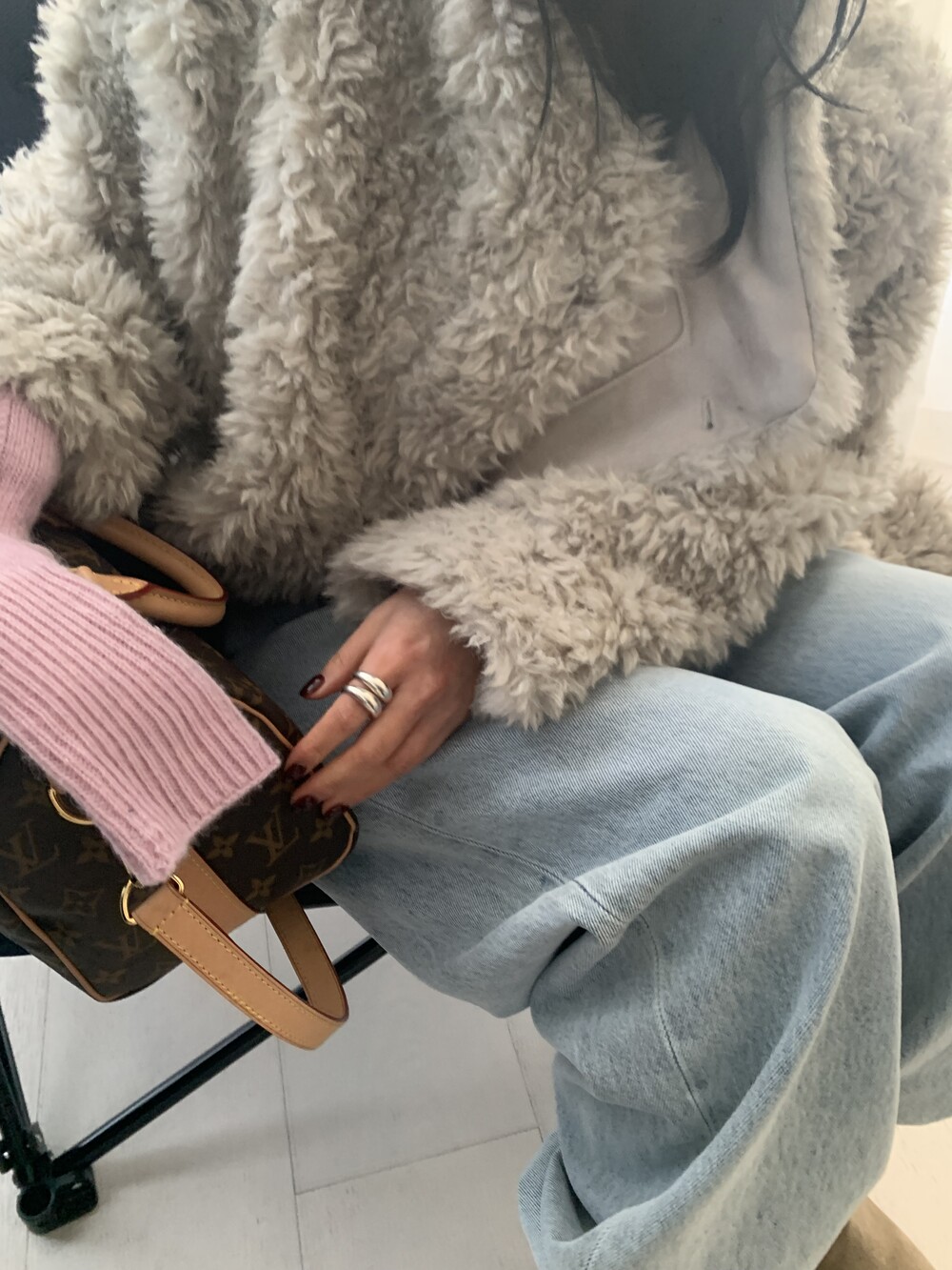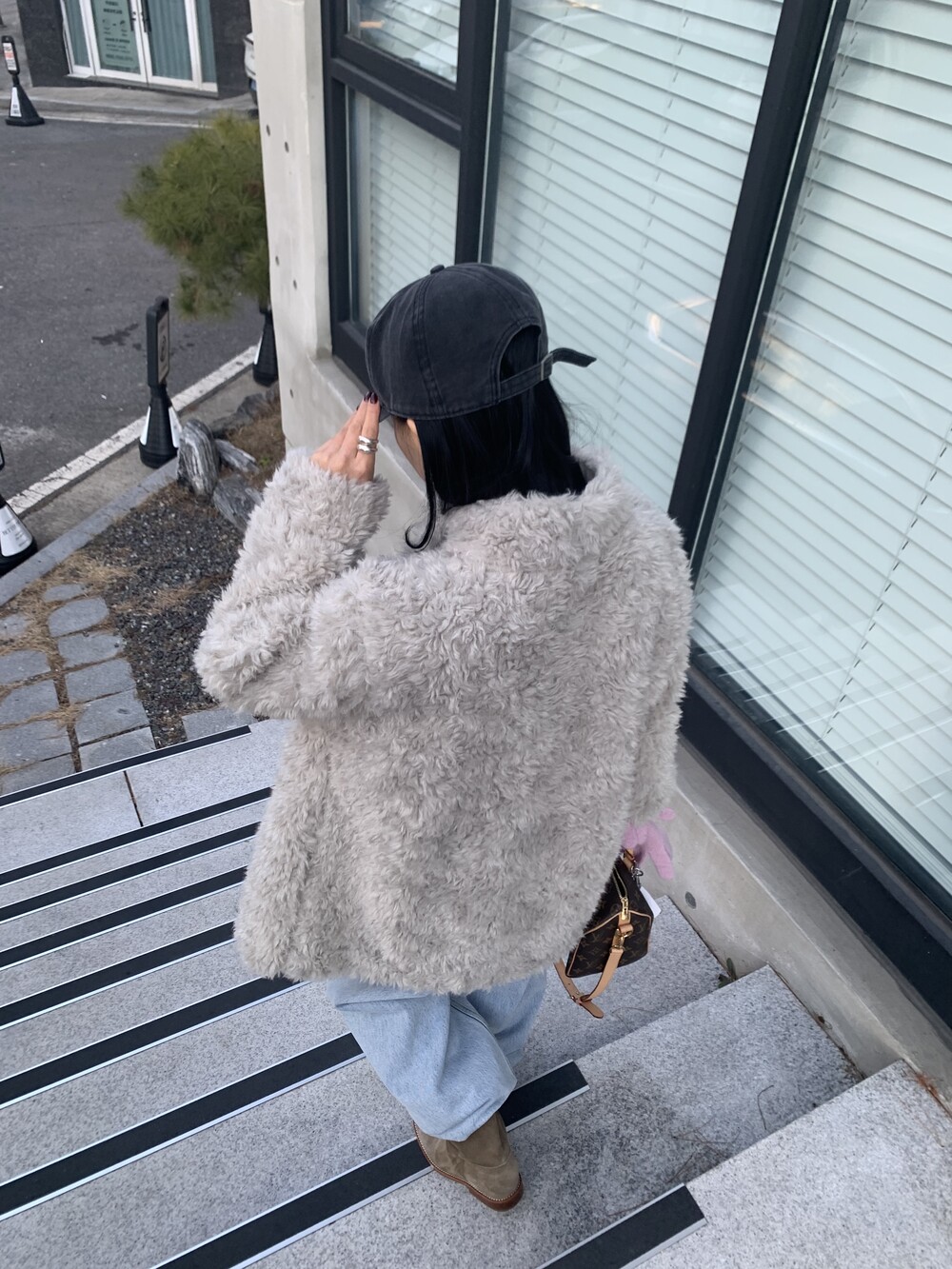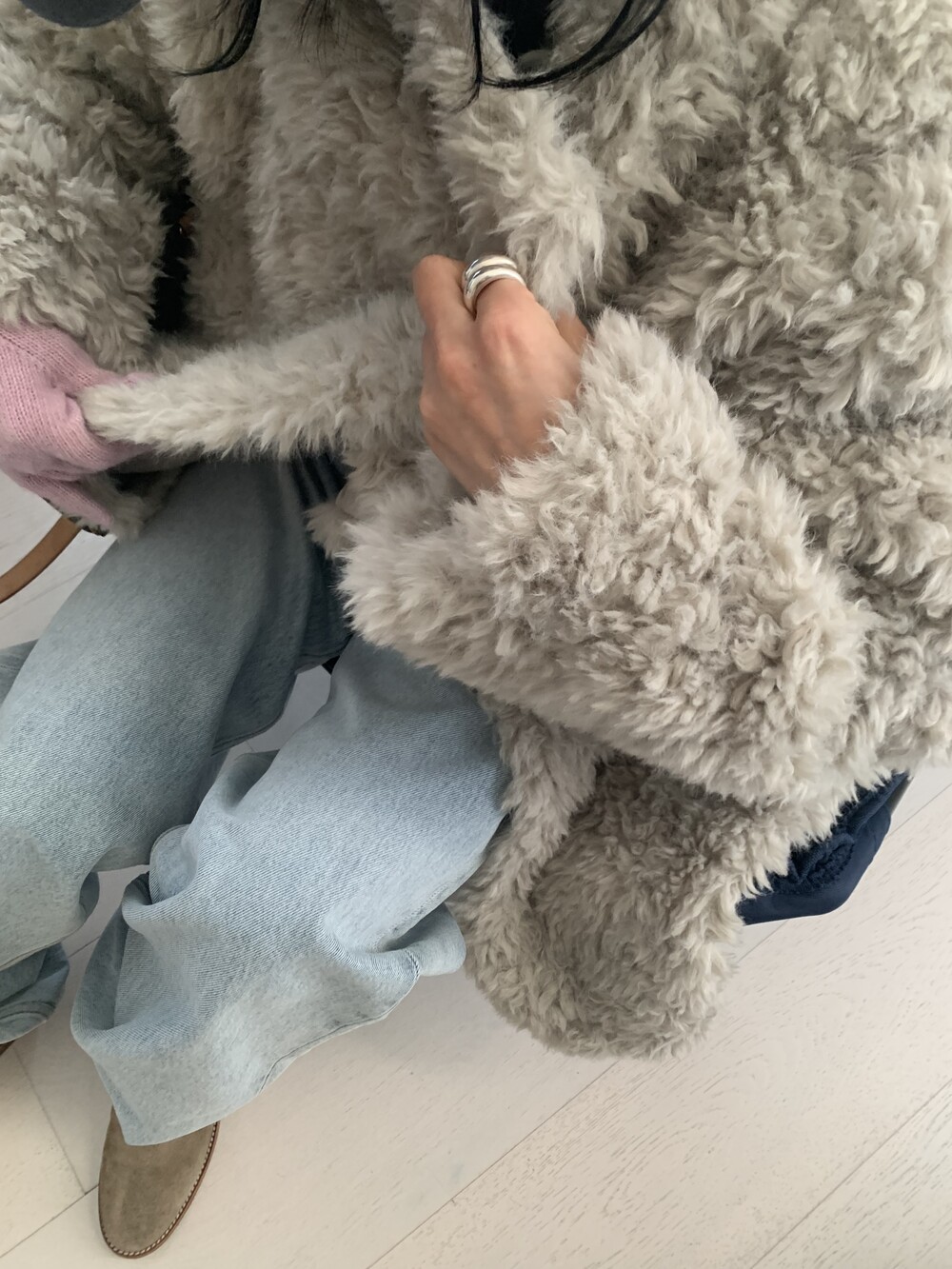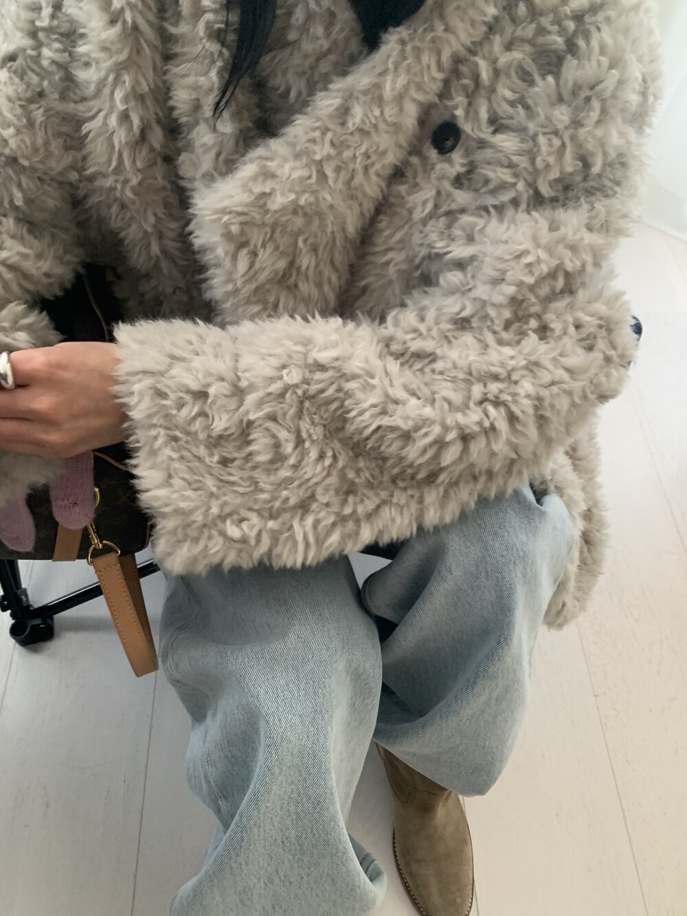 과하지 않은 볼륨감으로 부담없이 데일리하게 즐기실 수 있는 퍼 아우터 제품 입니다 :)