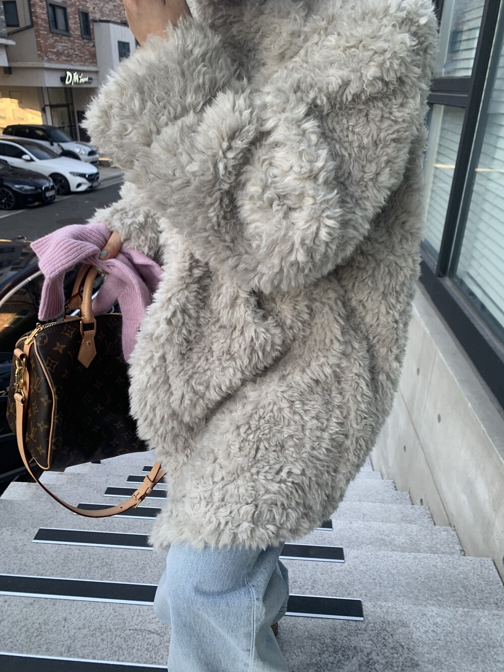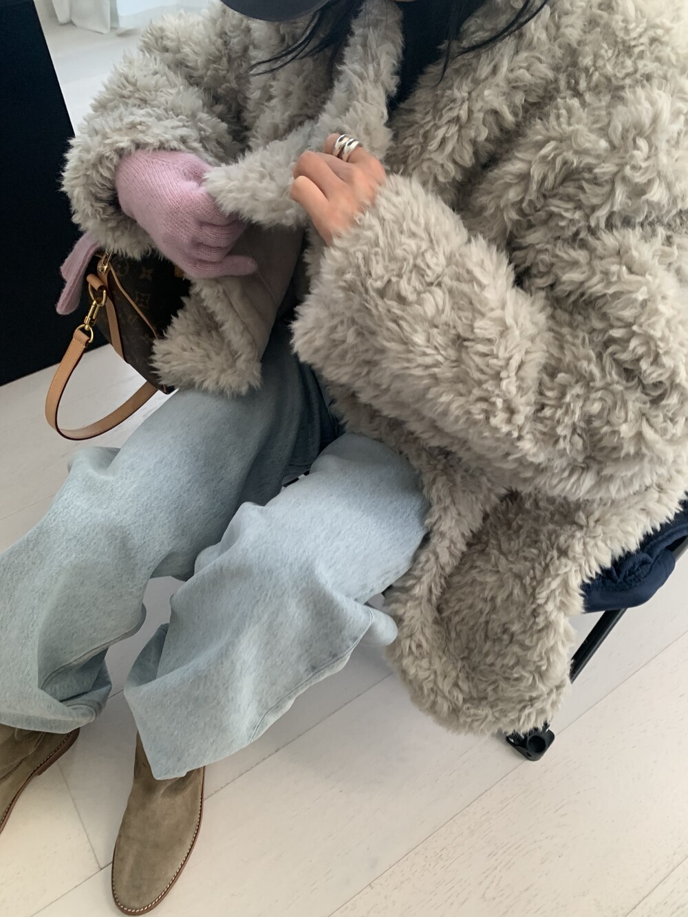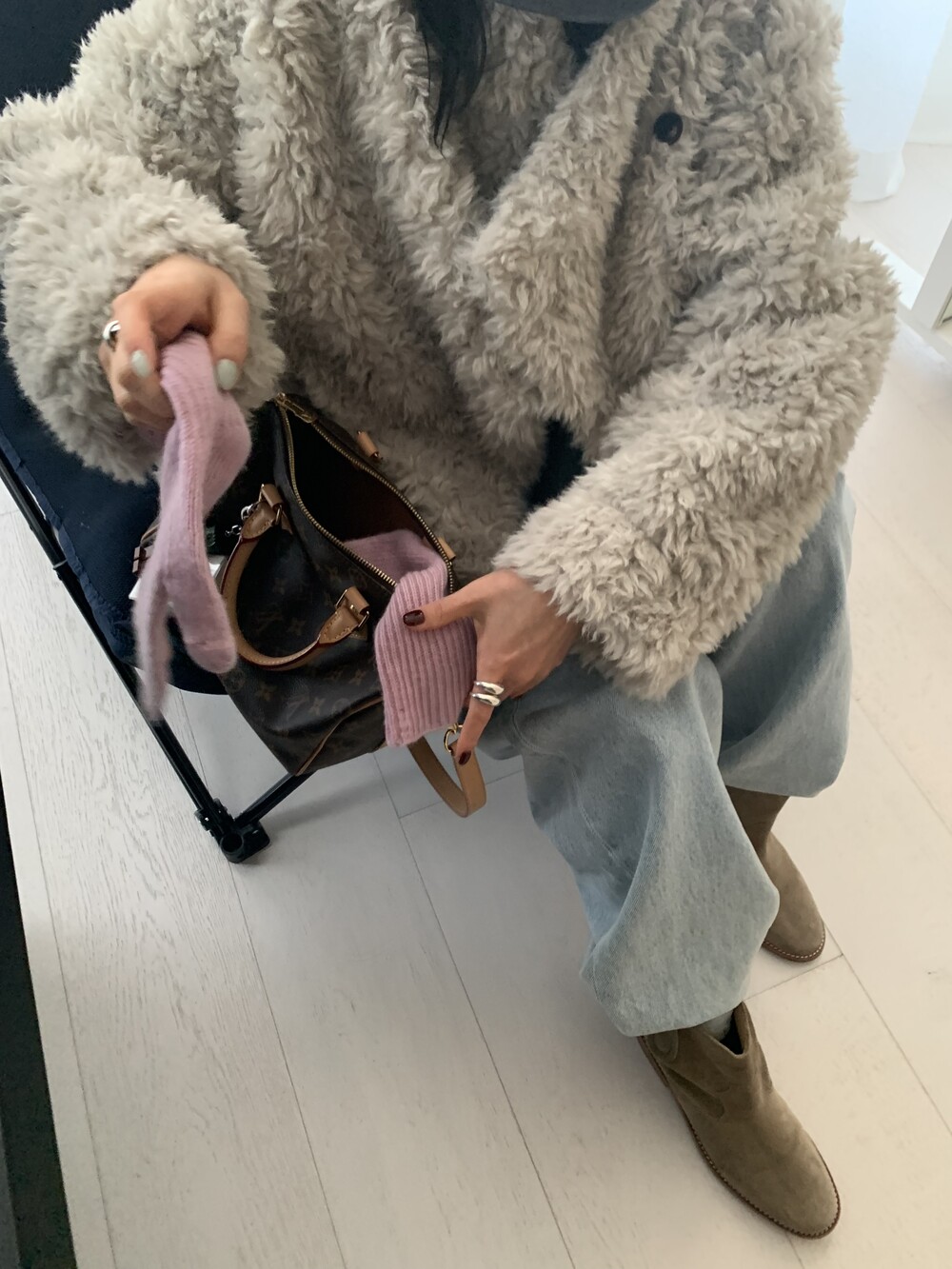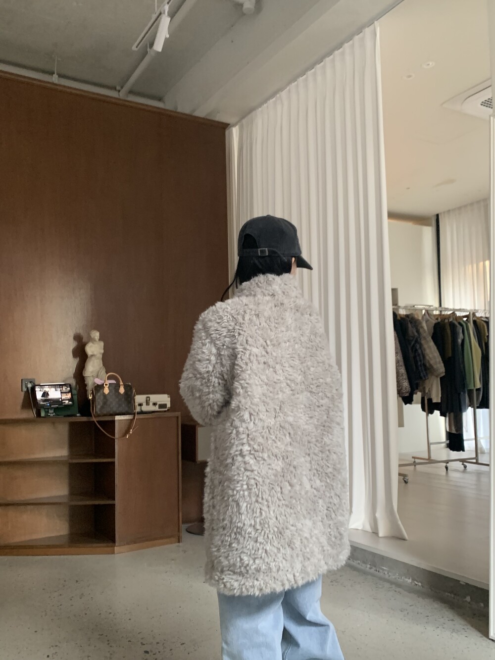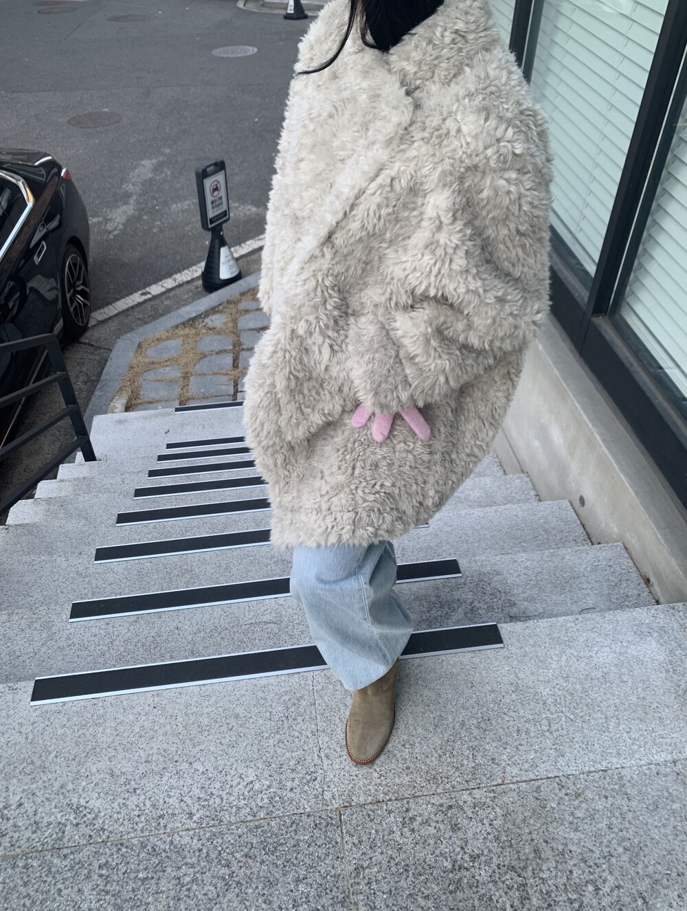 과하지 않은 볼륨감으로 부담없이 데일리하게 즐기실 수 있는 퍼 아우터 제품 입니다 :)