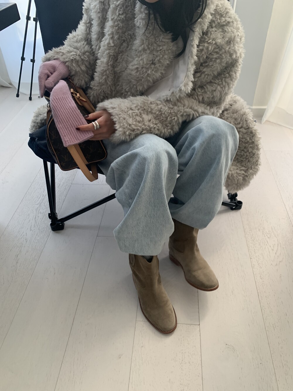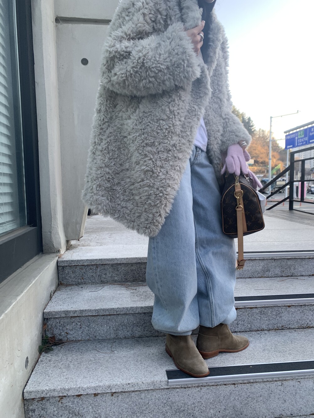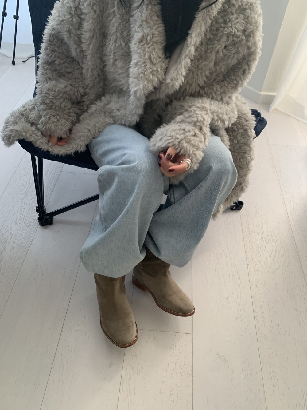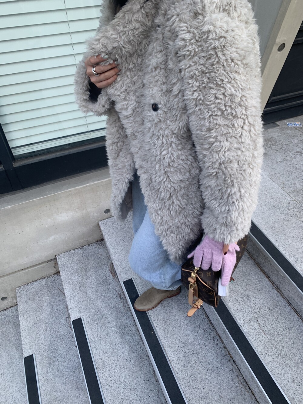 과하지 않은 볼륨감으로 부담없이 데일리하게 즐기실 수 있는 퍼 아우터 제품 입니다 :)