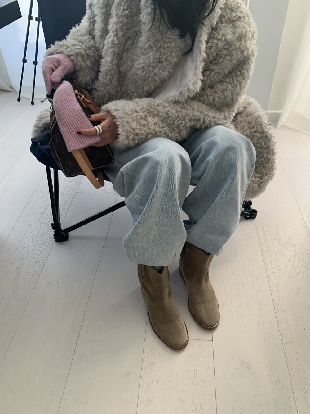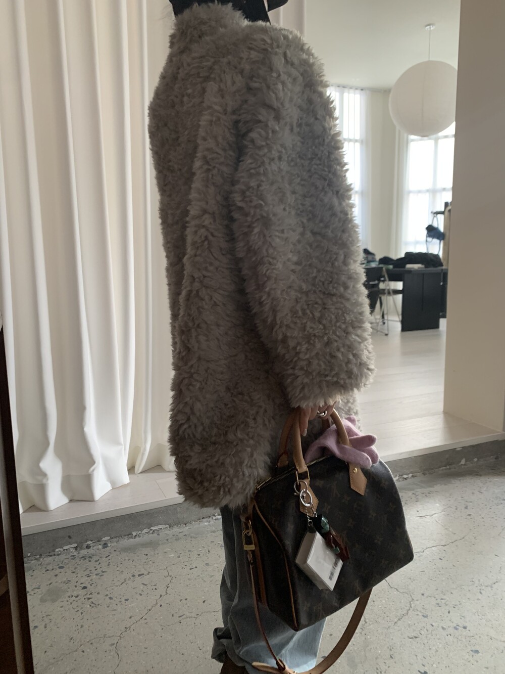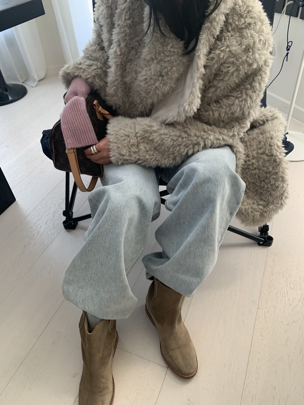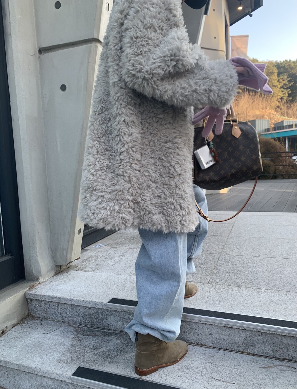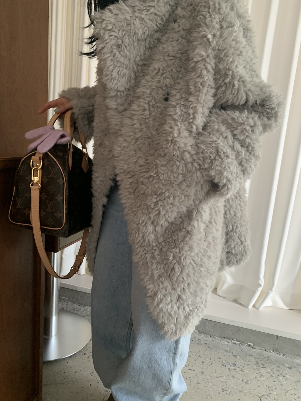과하지 않은 볼륨감으로 부담없이 데일리하게 즐기실 수 있는 퍼 아우터 제품 입니다 :)