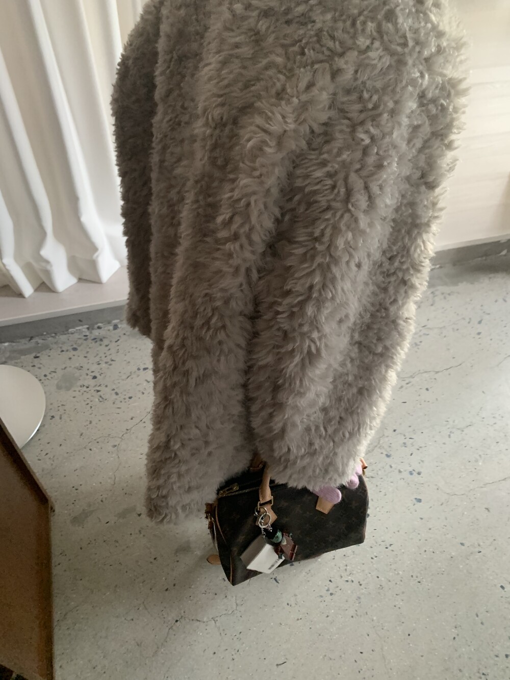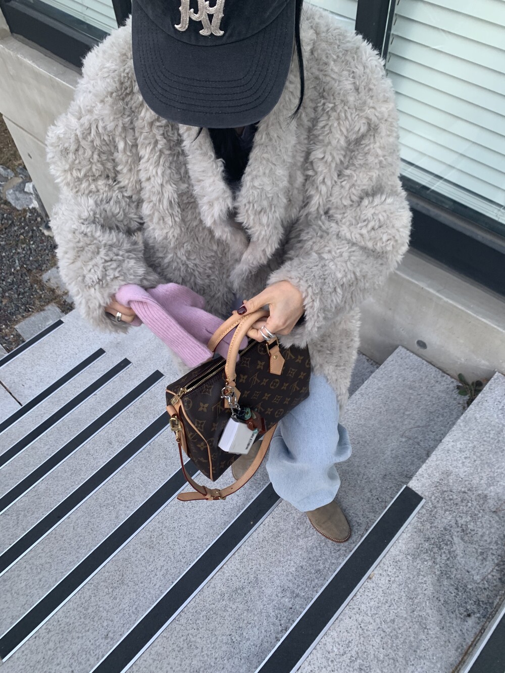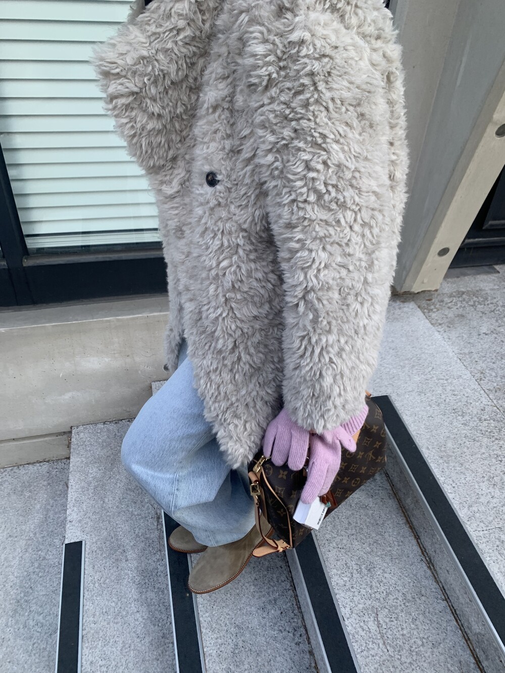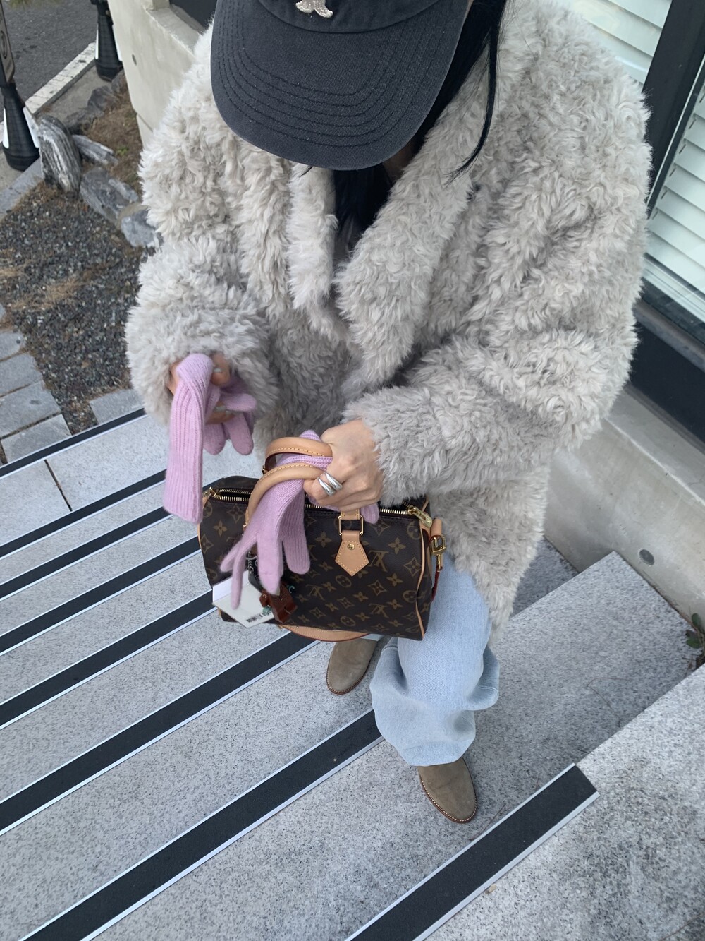 과하지 않은 볼륨감으로 부담없이 데일리하게 즐기실 수 있는 퍼 아우터 제품 입니다 :)