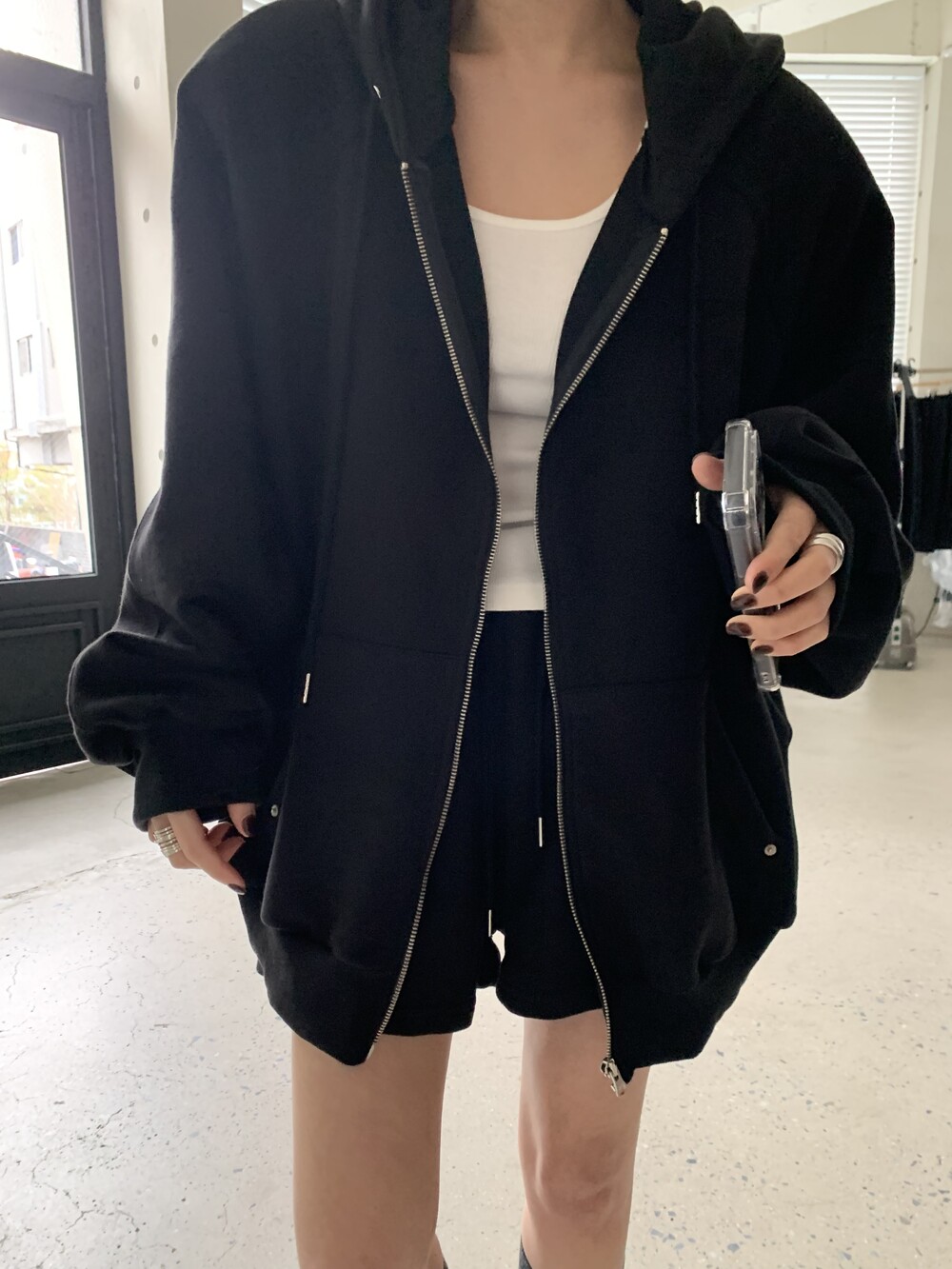 rivet hoody zip-up *(3color)