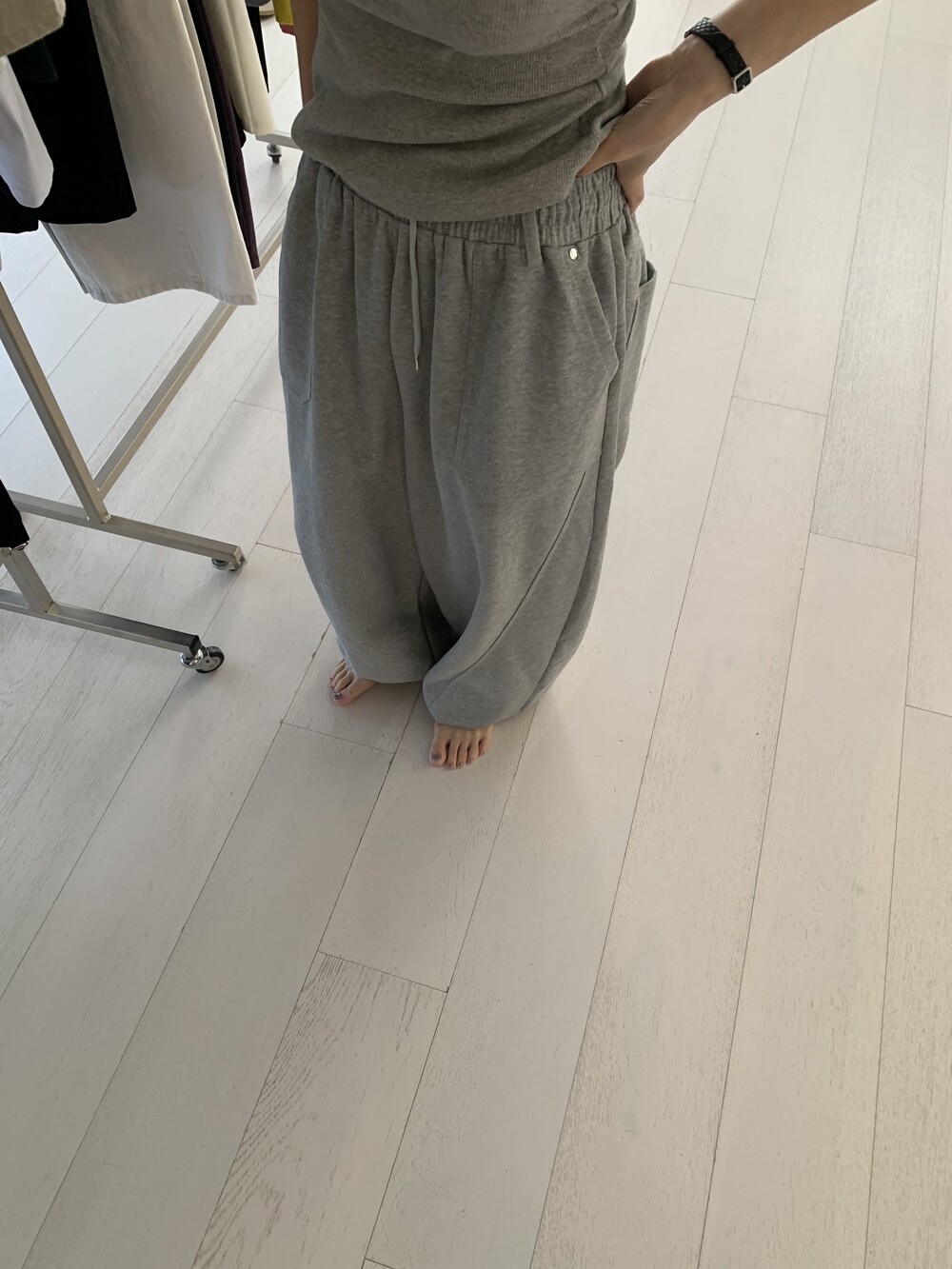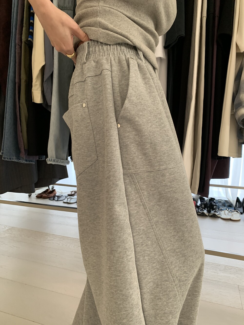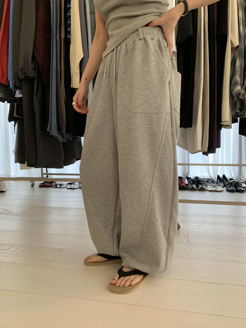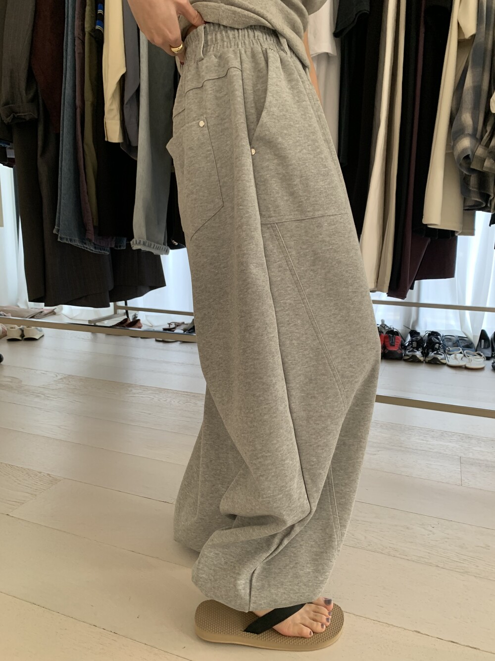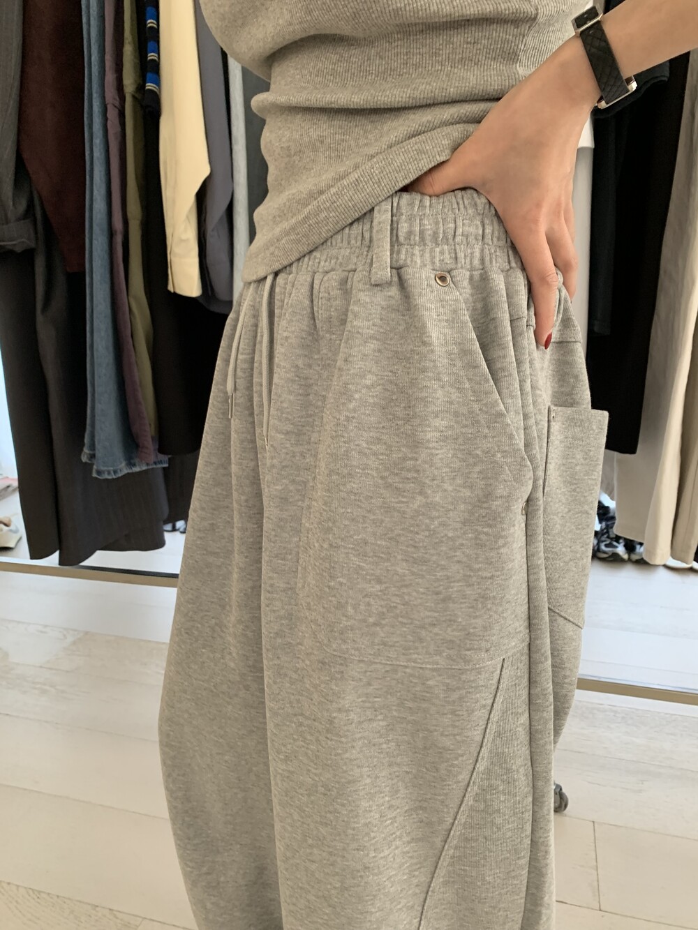 FREE 총장 102.5 허리(밴딩최대) 35-57 밑위 38 허벅지 41 힙 71
