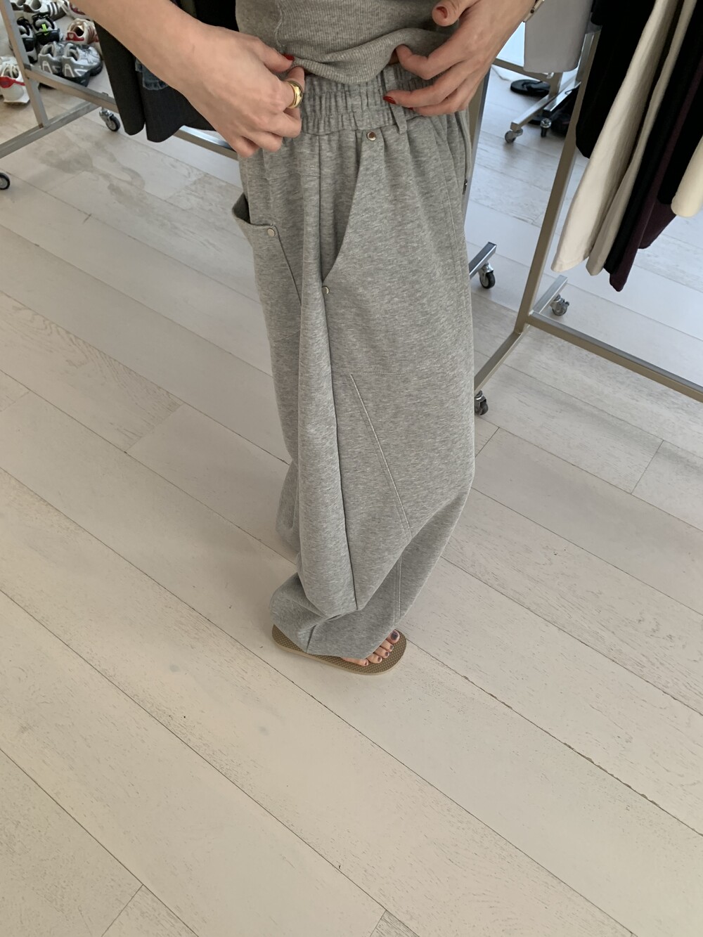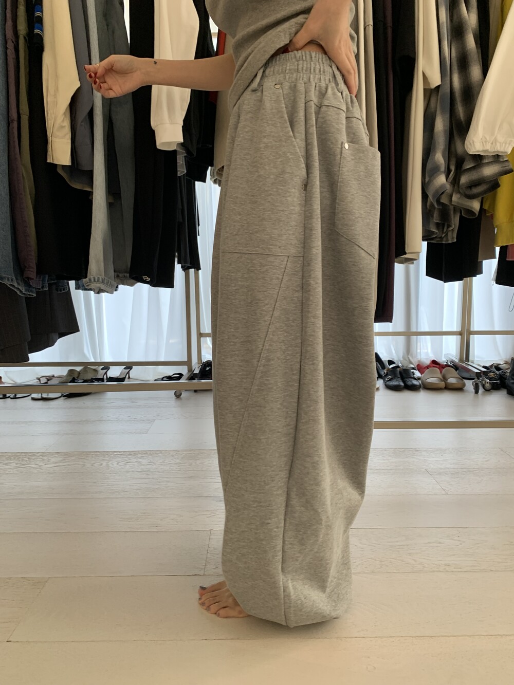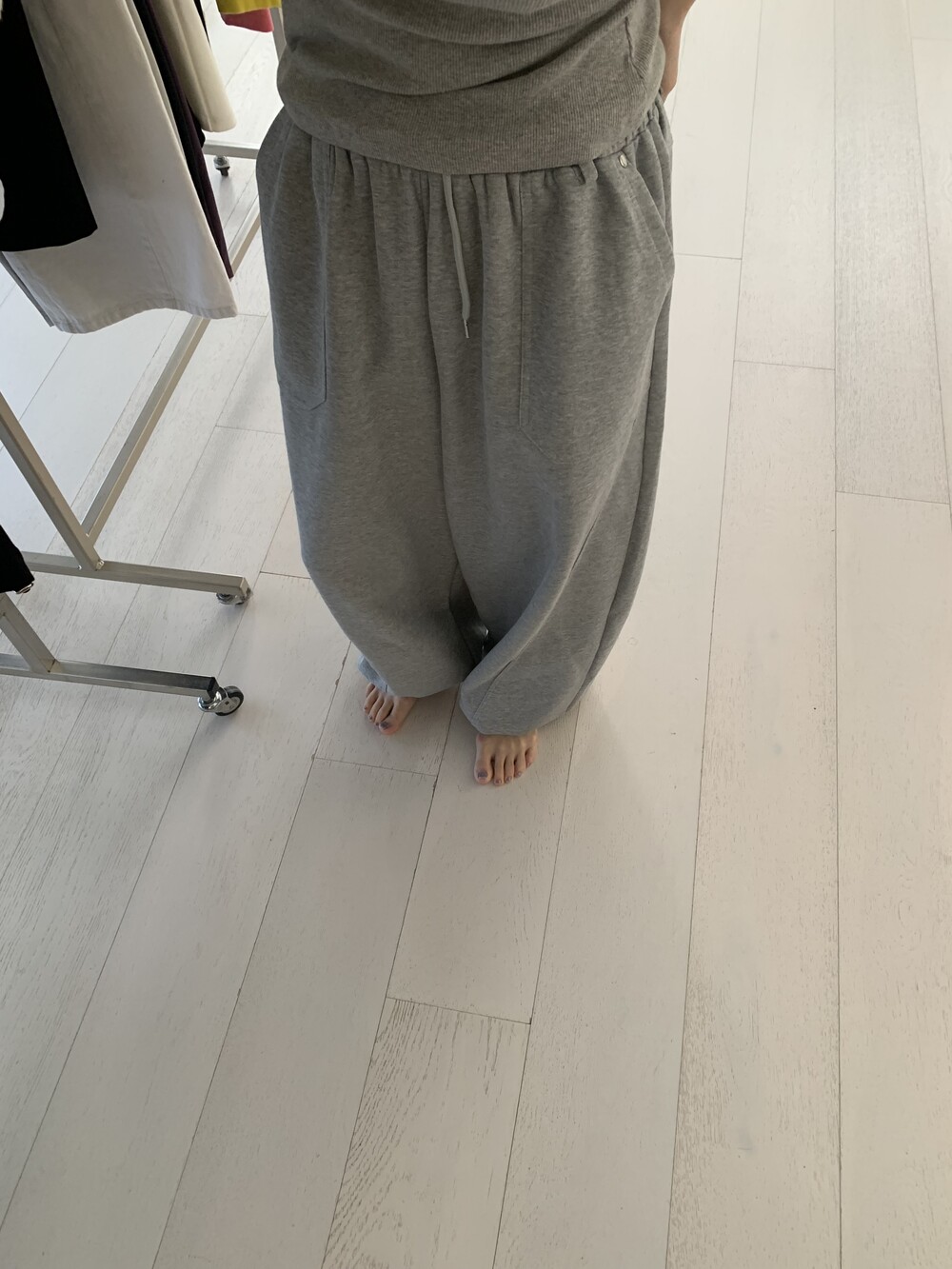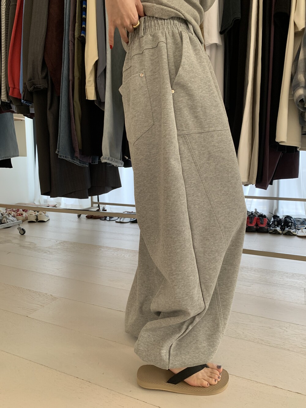 FREE 총장 102.5 허리(밴딩최대) 35-57 밑위 38 허벅지 41 힙 71