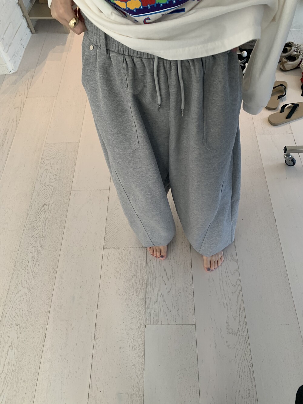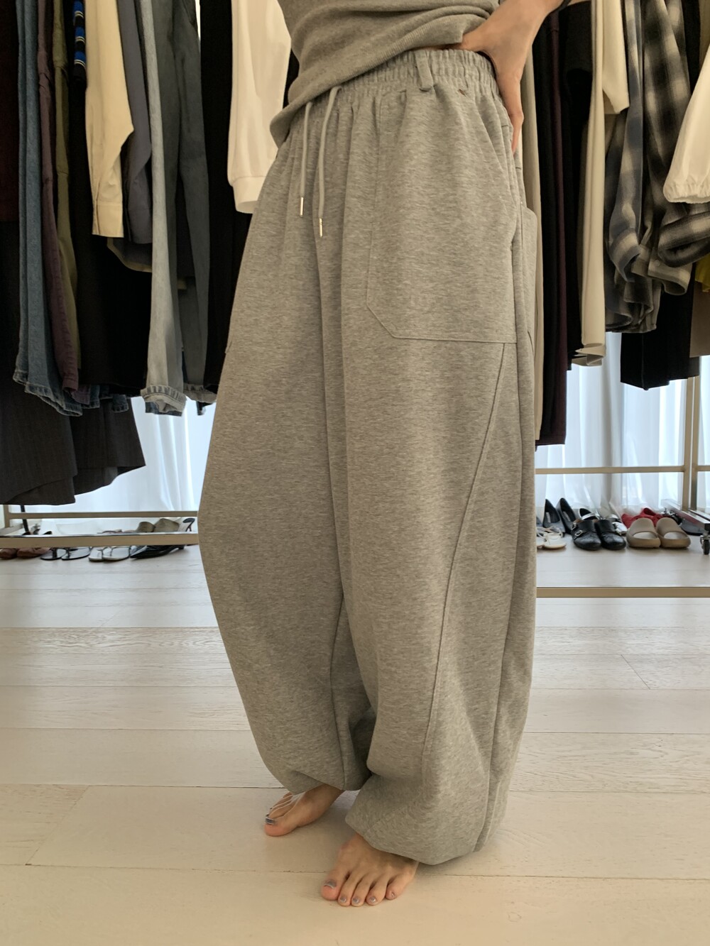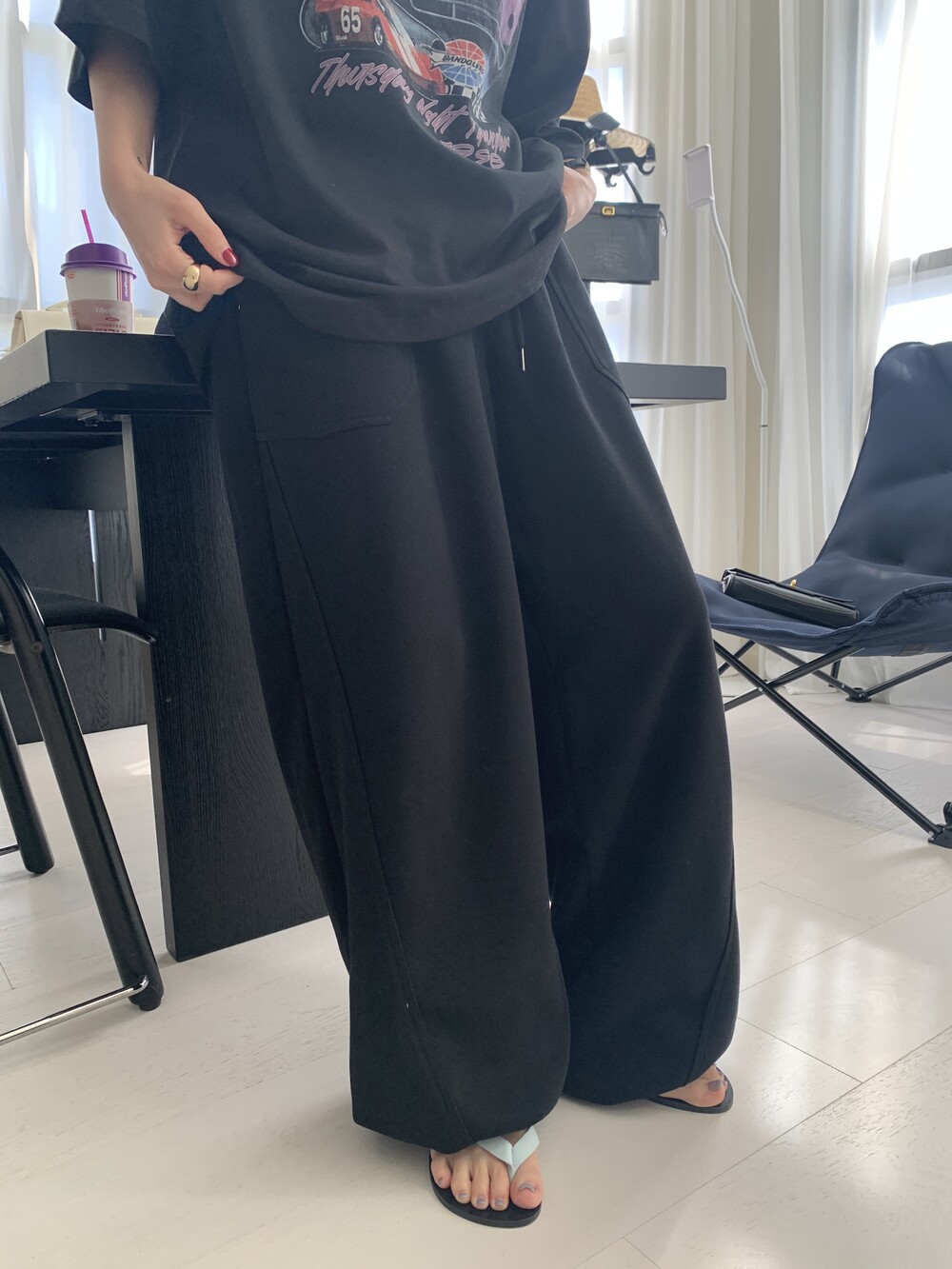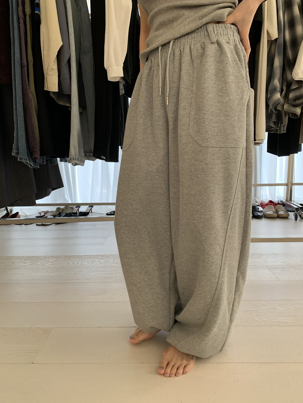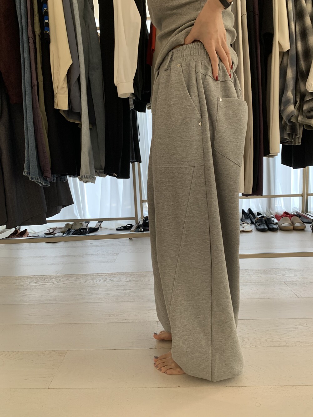 FREE 총장 102.5 허리(밴딩최대) 35-57 밑위 38 허벅지 41 힙 71