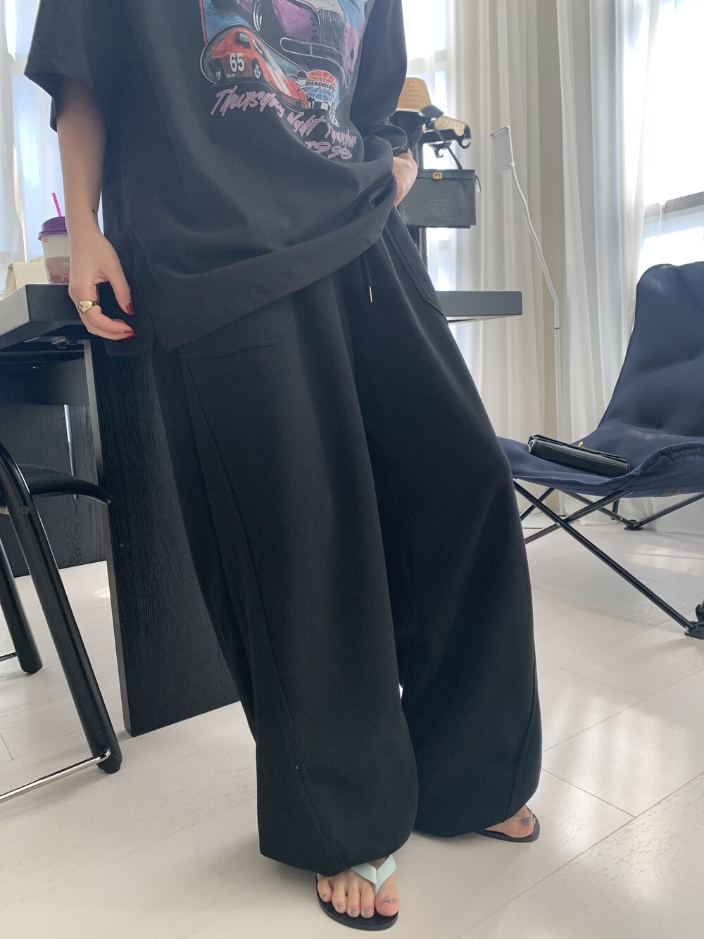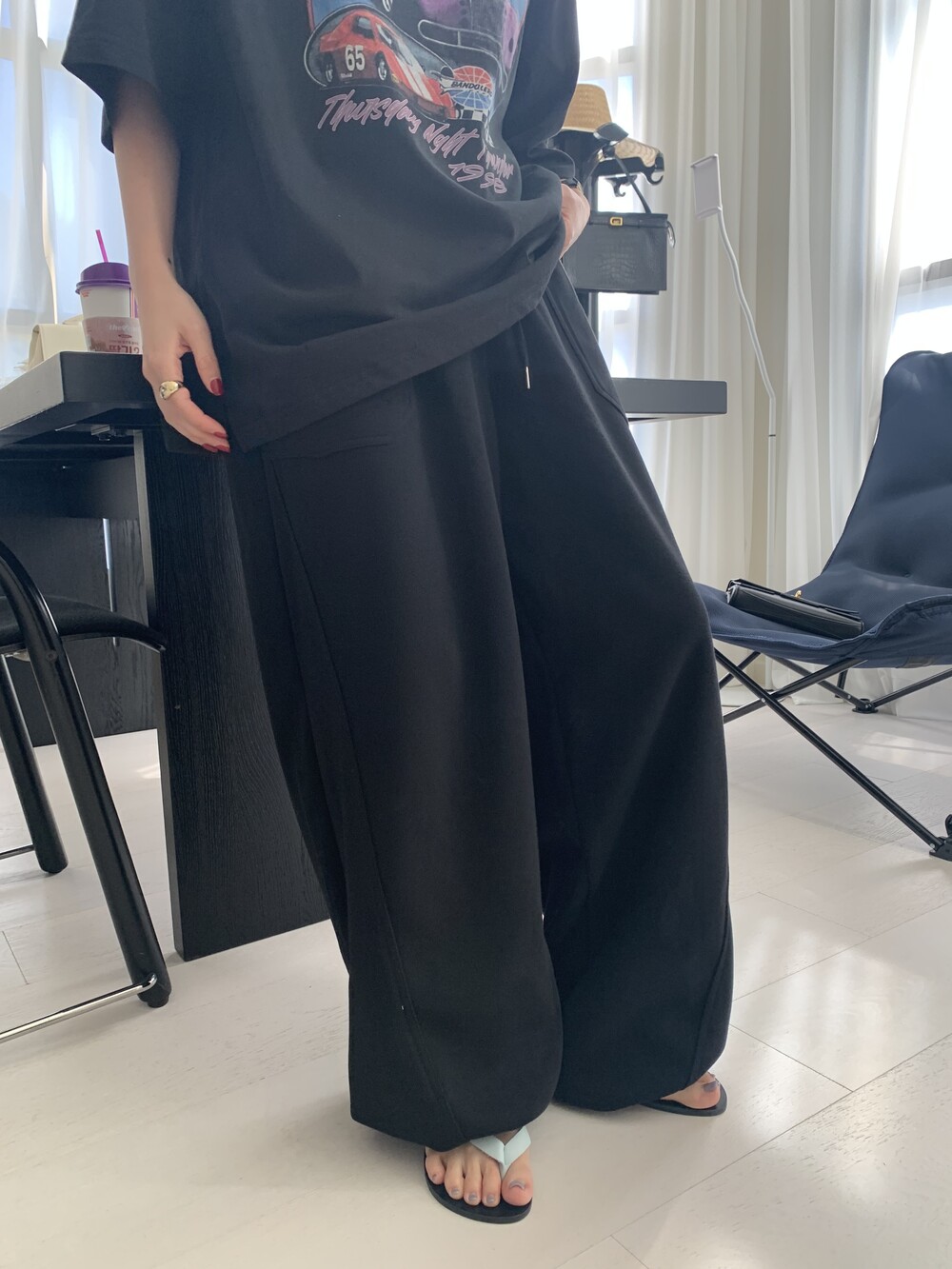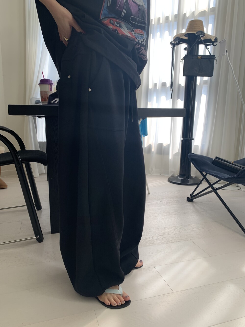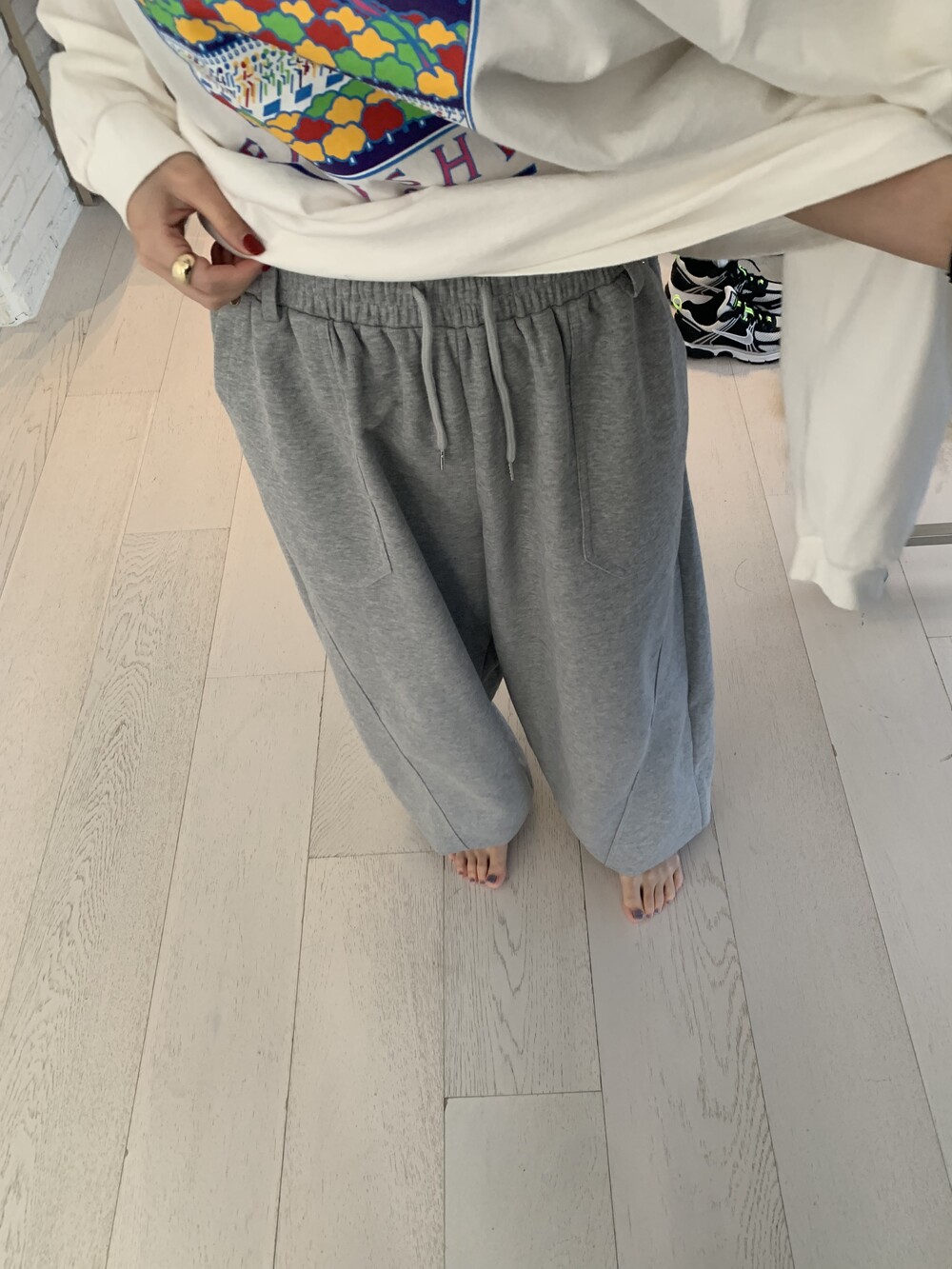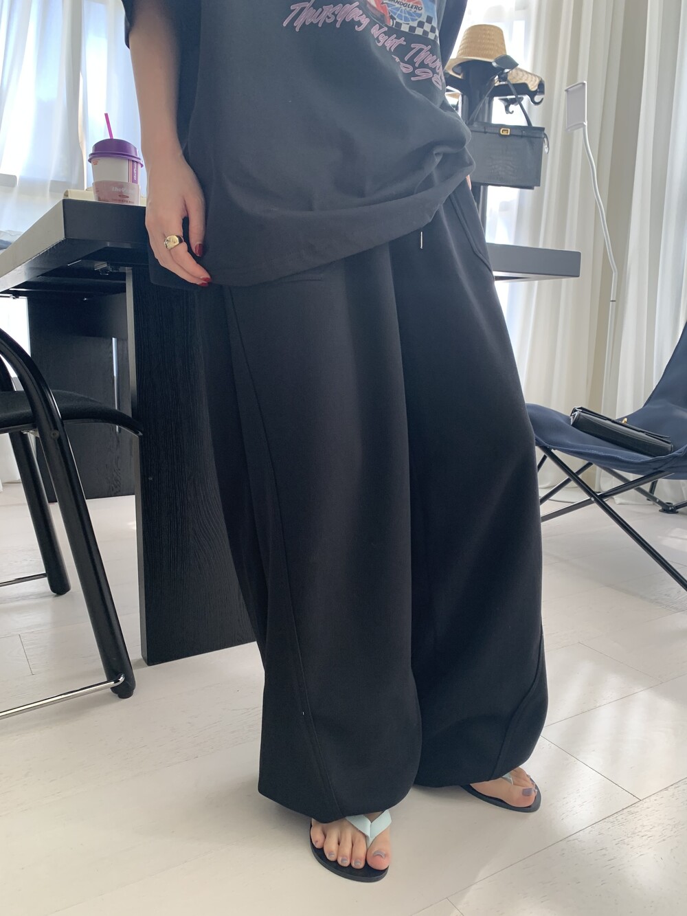 FREE 총장 102.5 허리(밴딩최대) 35-57 밑위 38 허벅지 41 힙 71