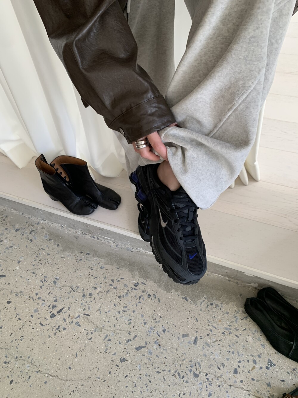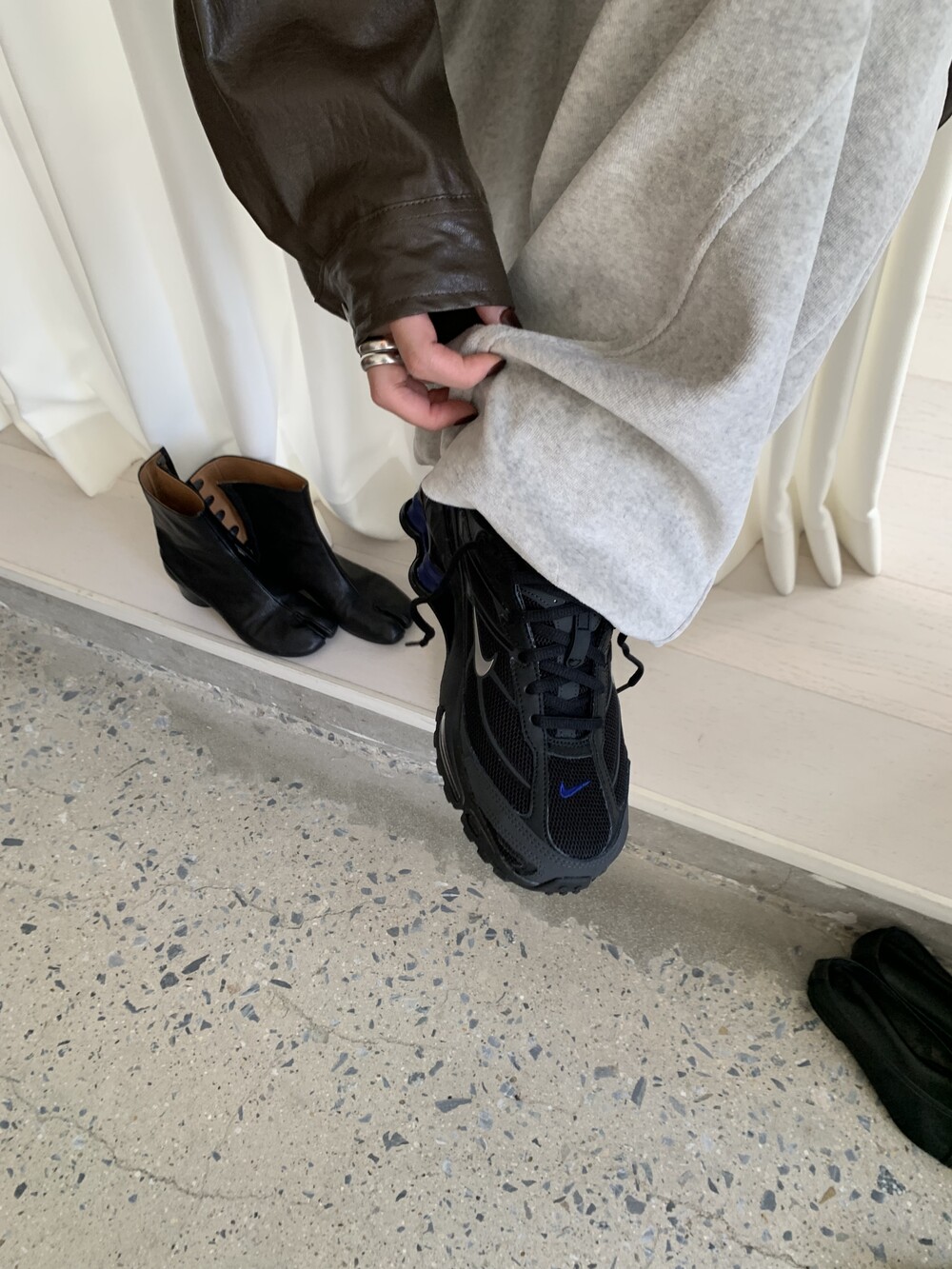 white melange / charcoal / black