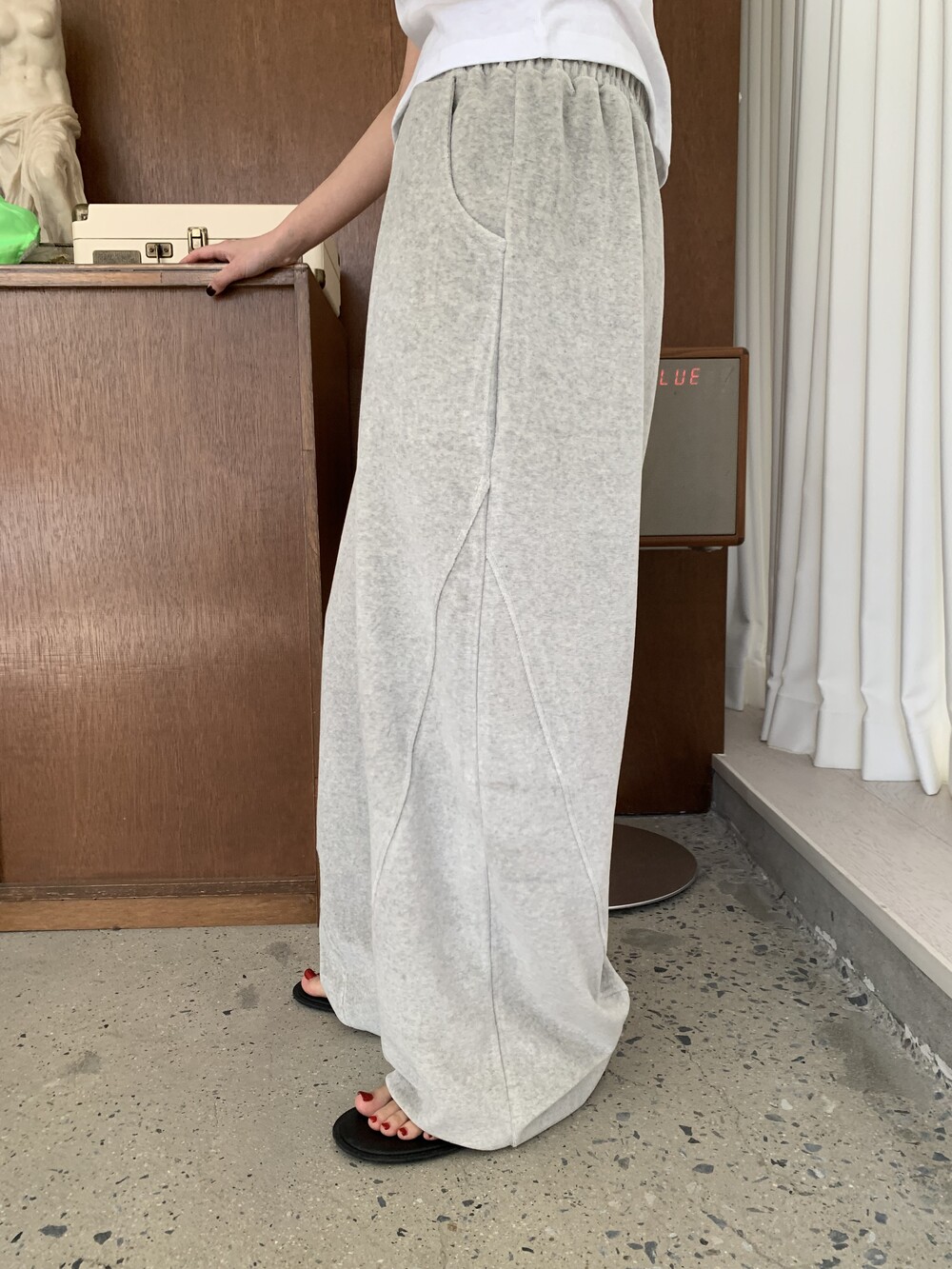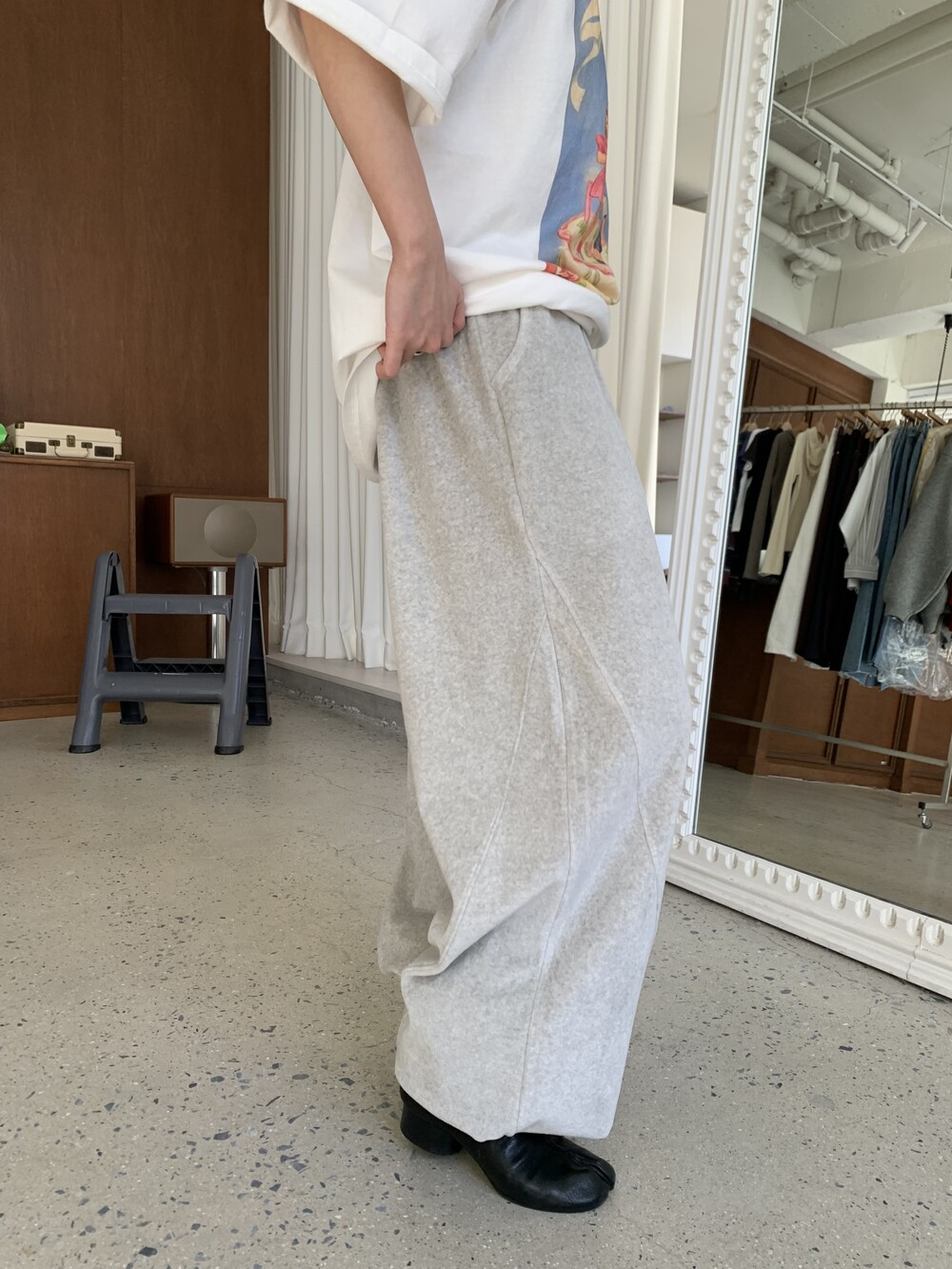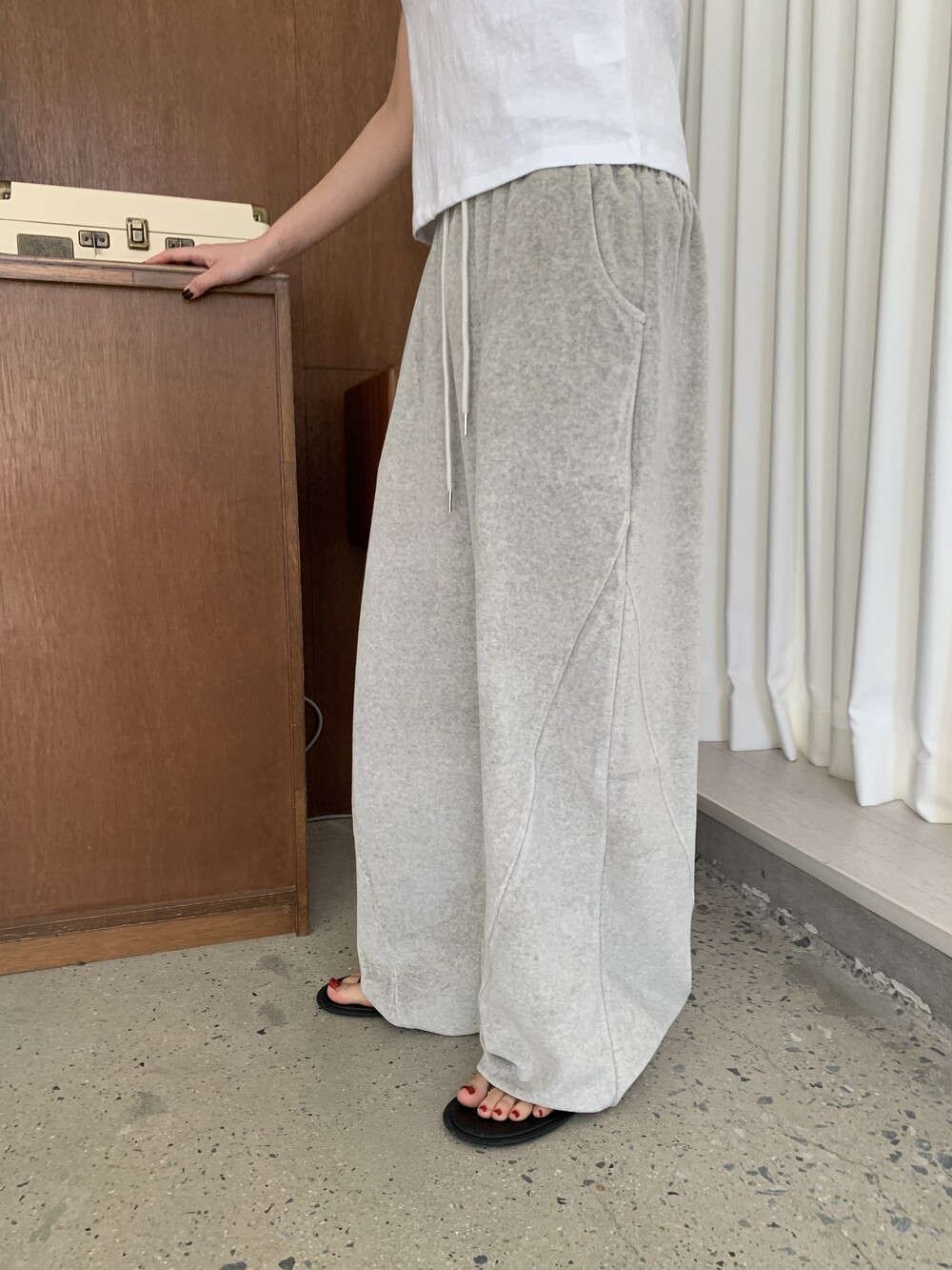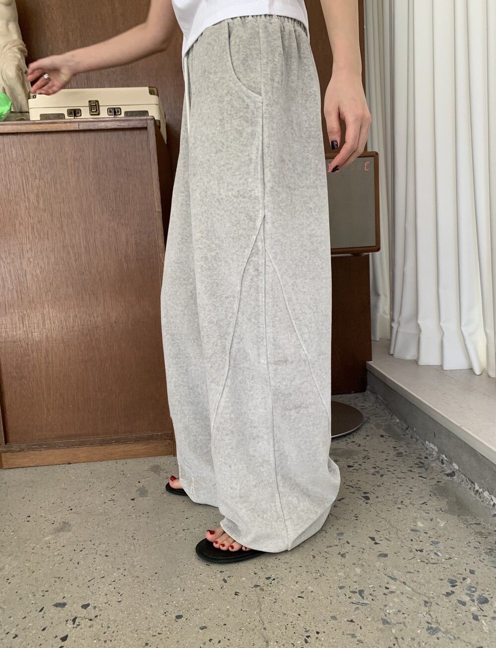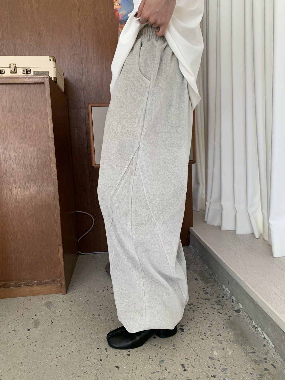 [bp made] velour hip two-way pt (white melange)