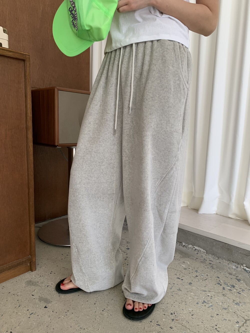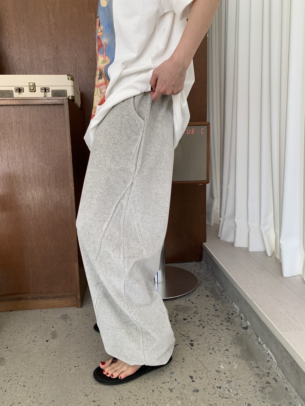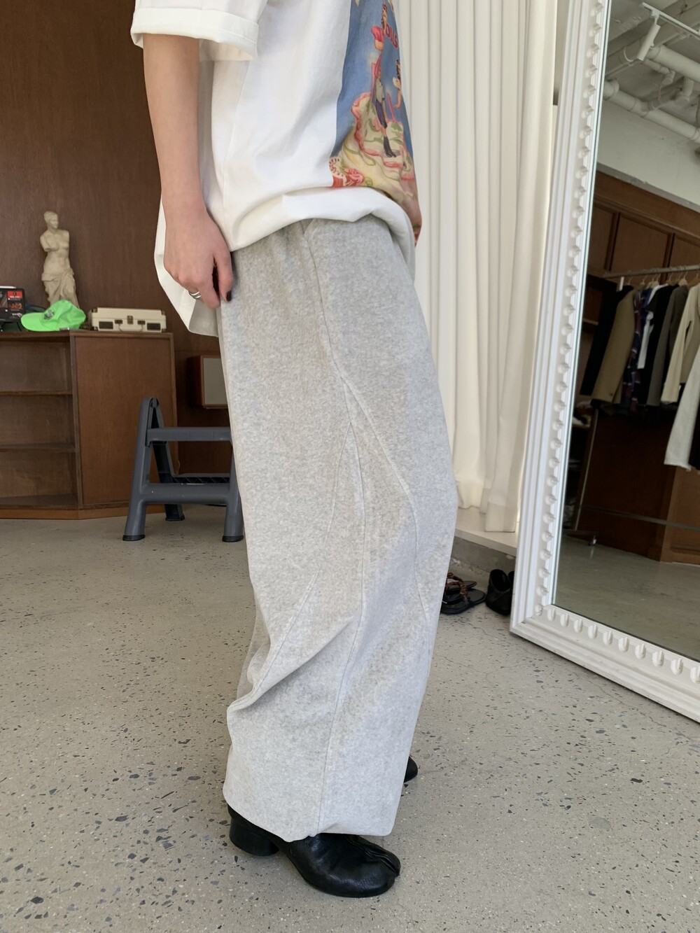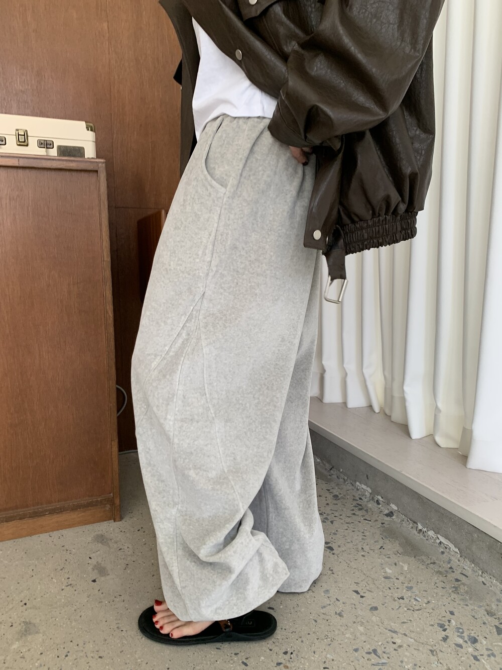 [bp made] velour hip two-way pt (white melange)