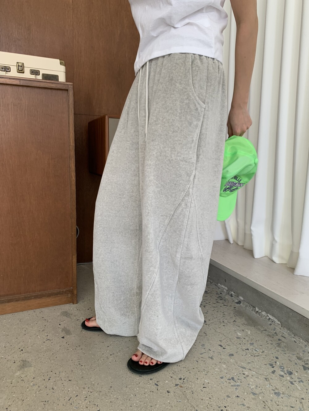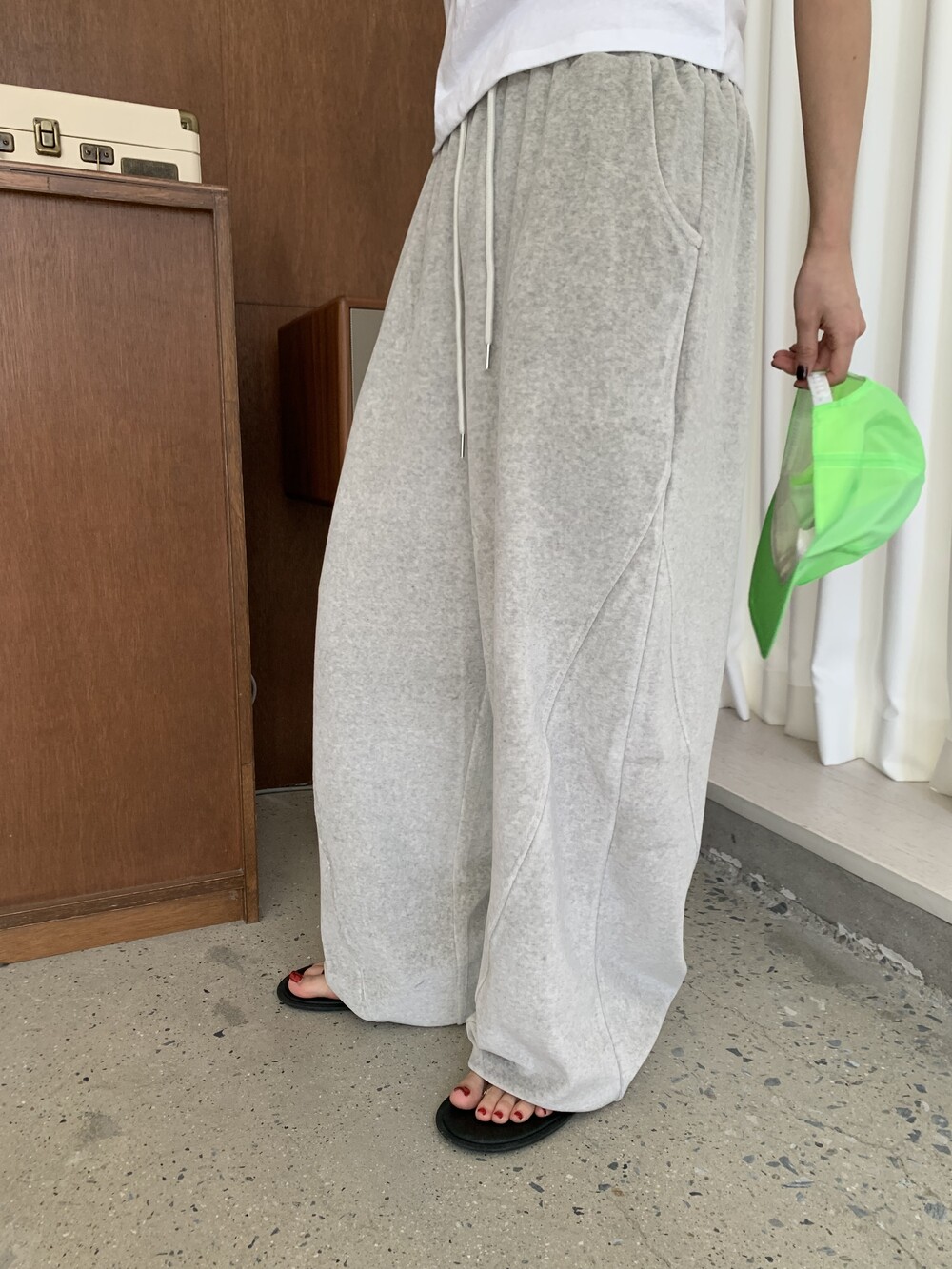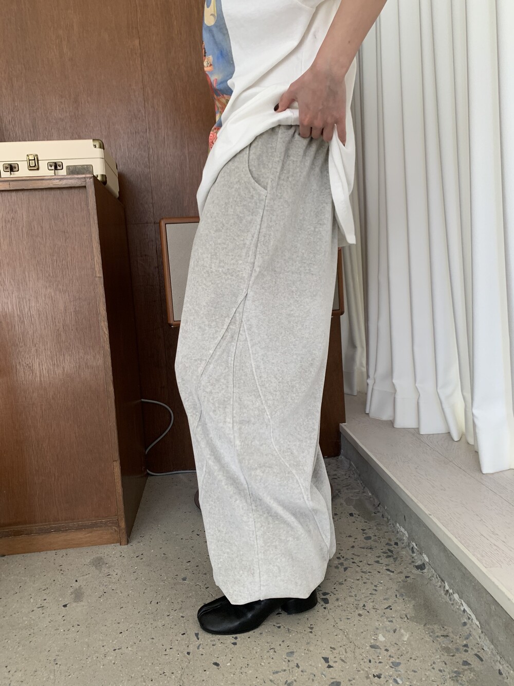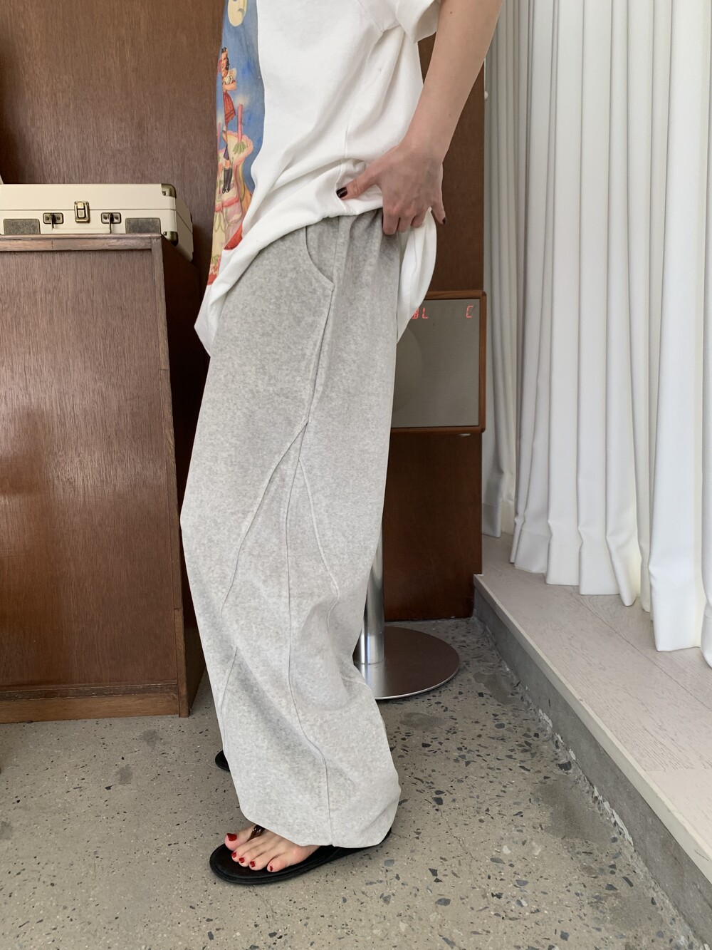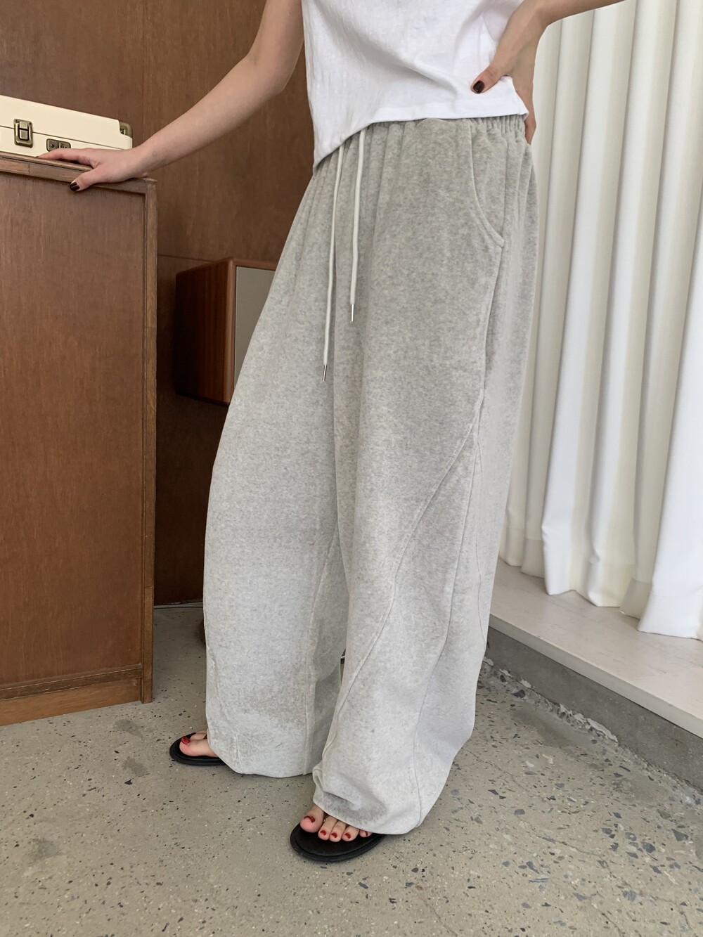 [bp made] velour hip two-way pt (white melange)