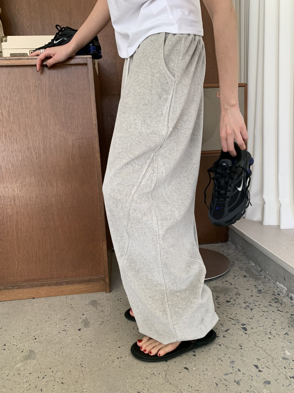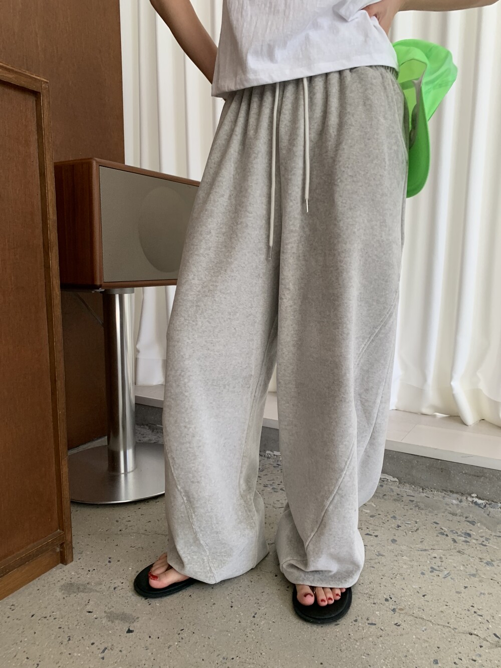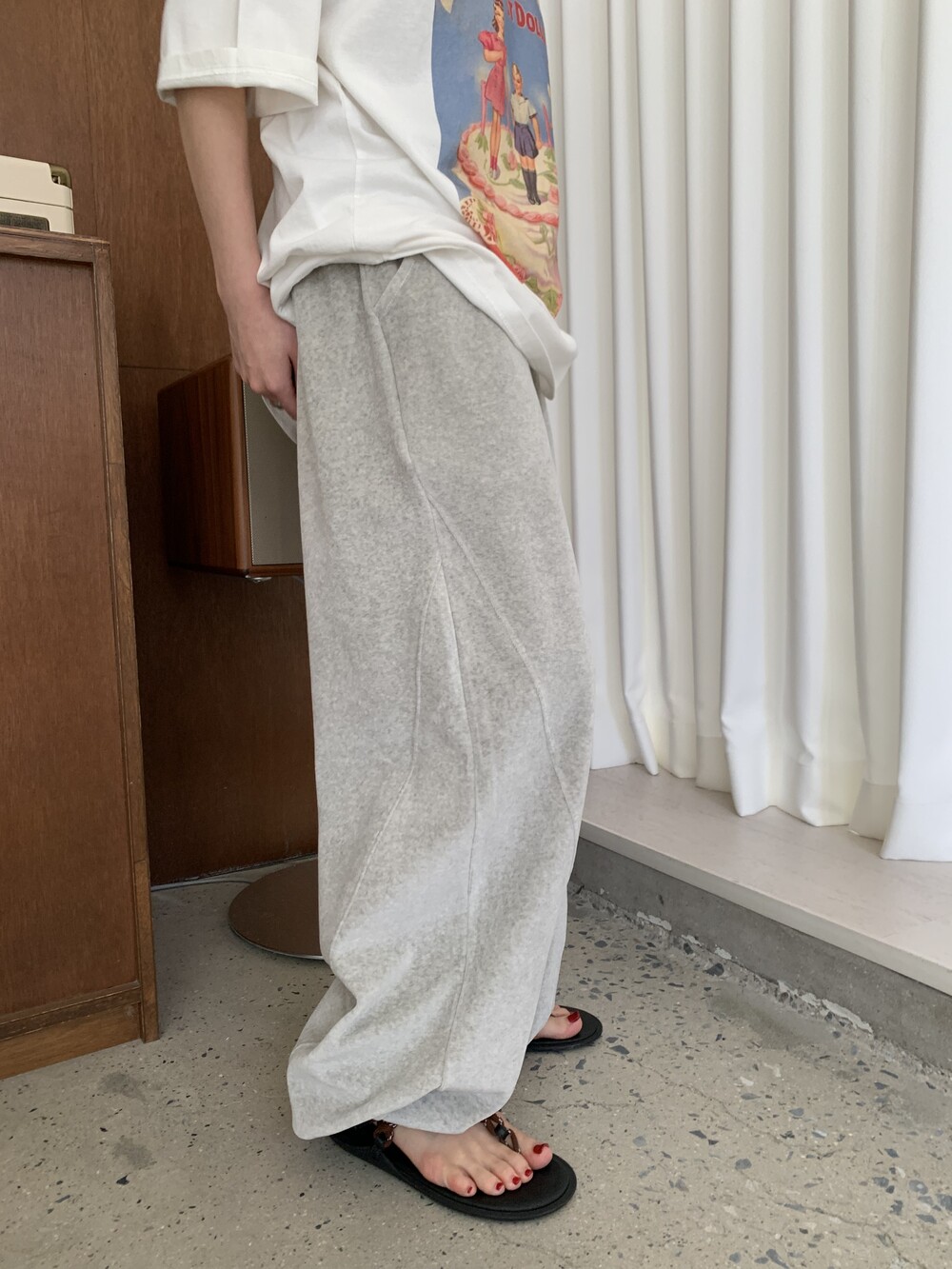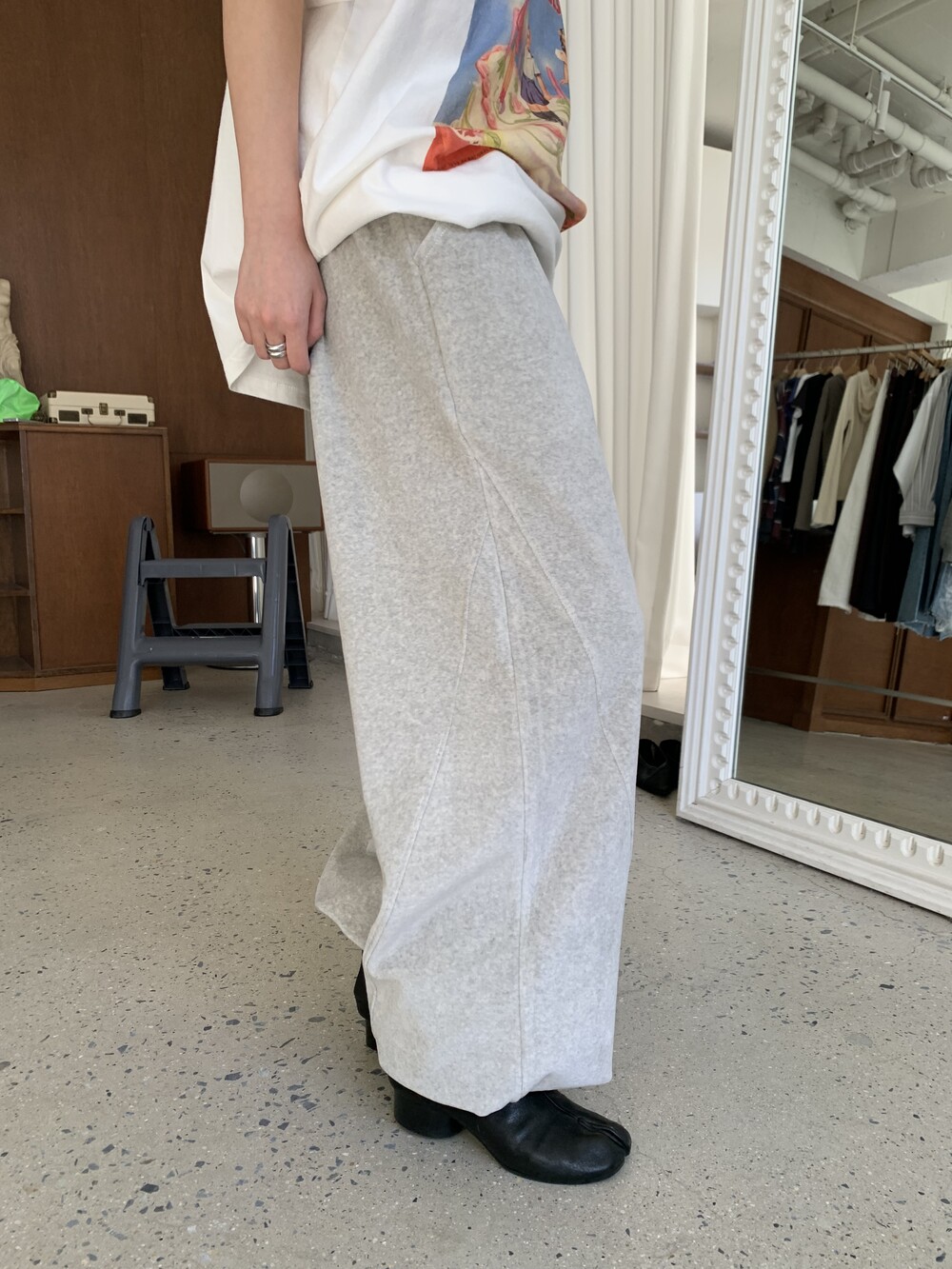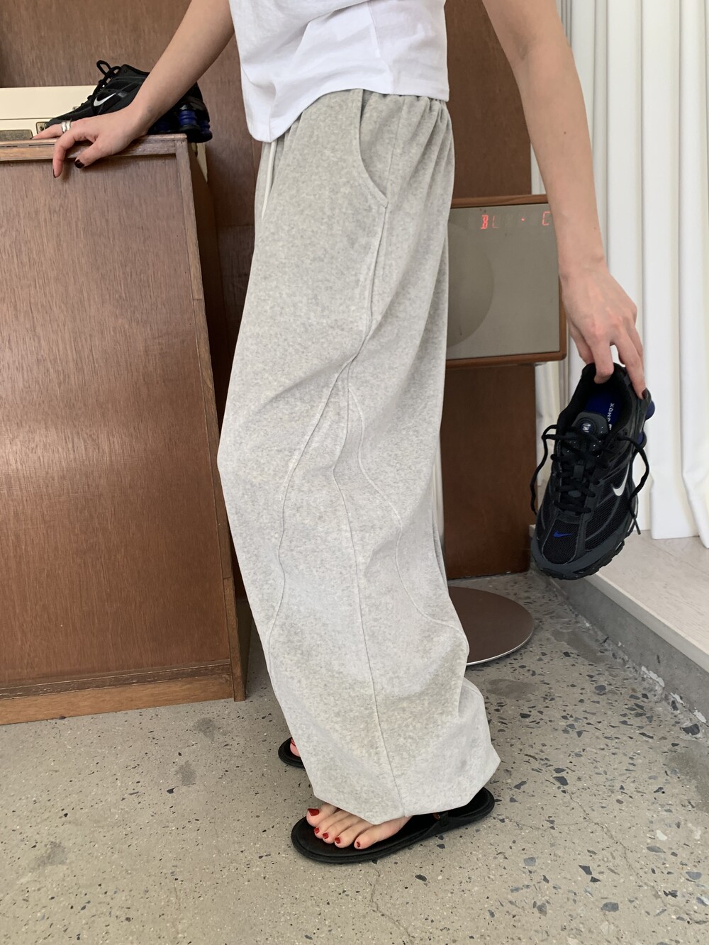 [bp made] velour hip two-way pt (white melange)