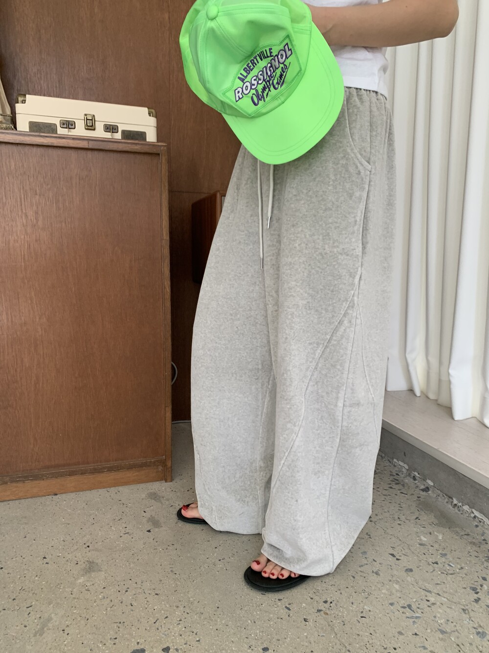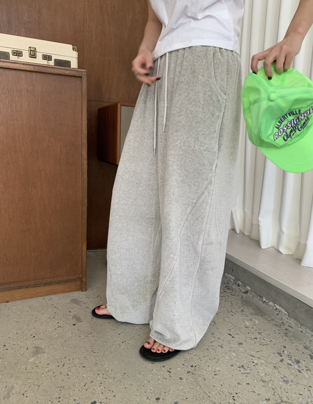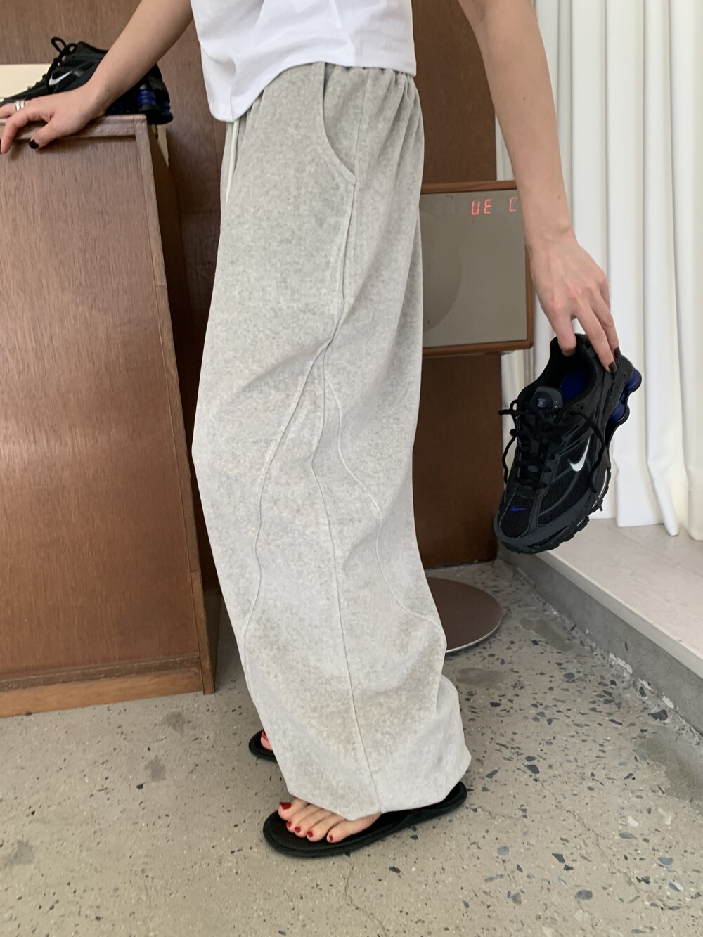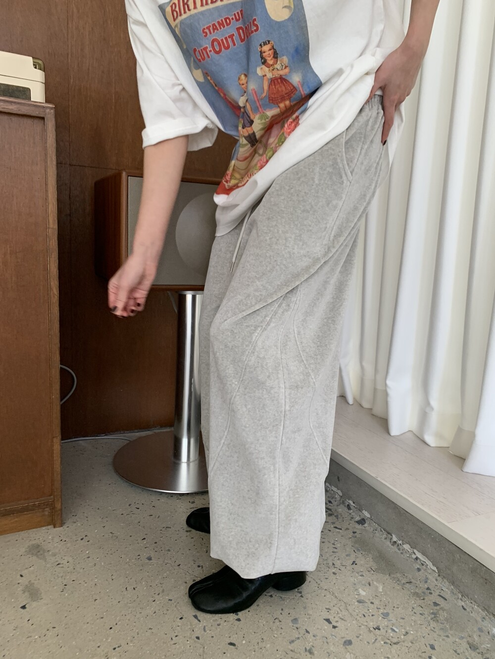 [bp made] velour hip two-way pt (white melange)