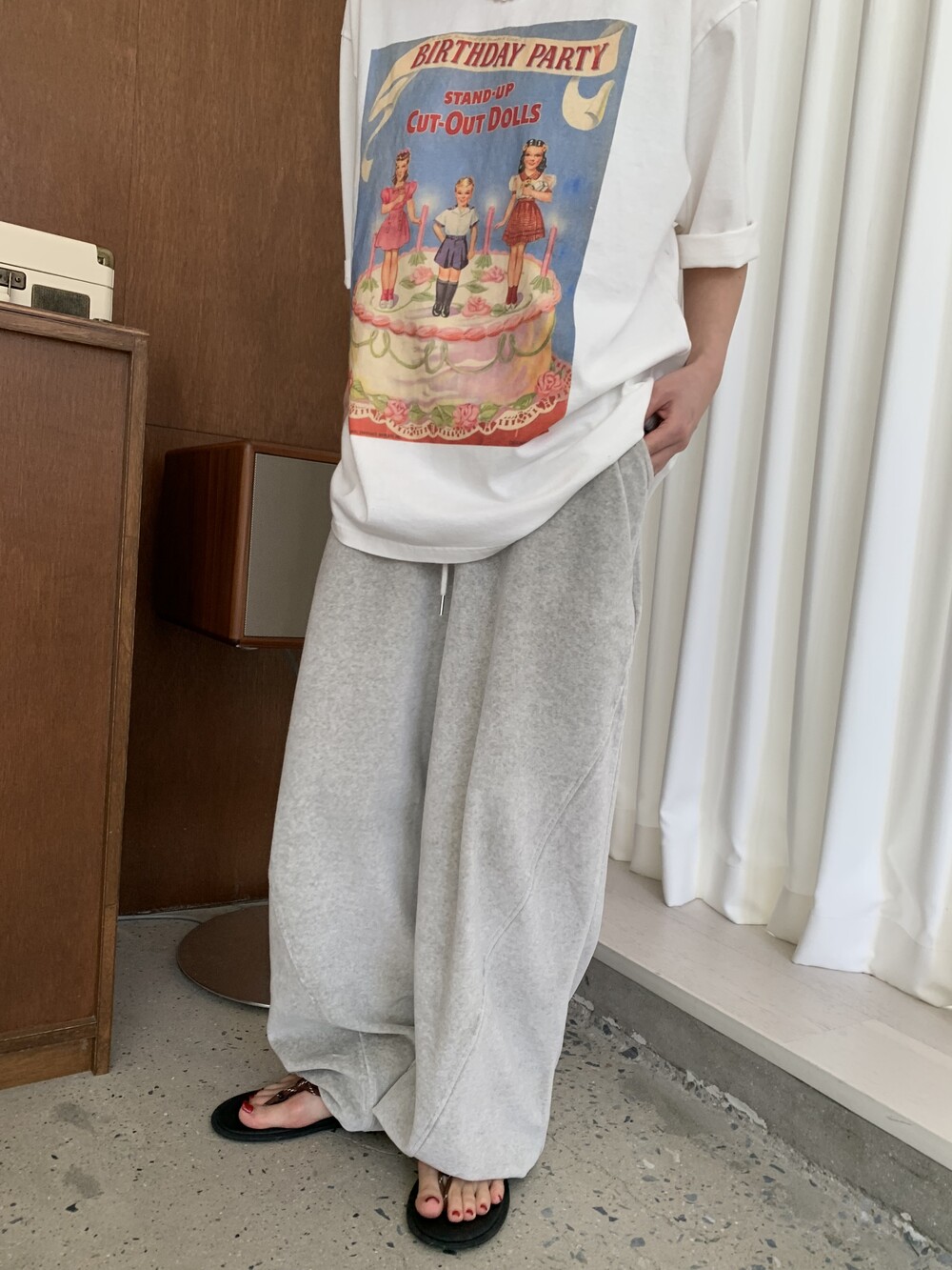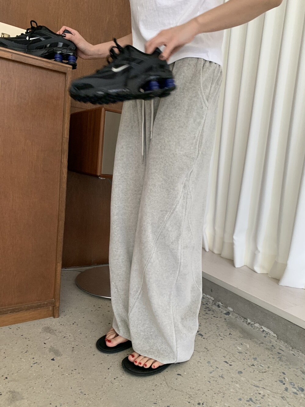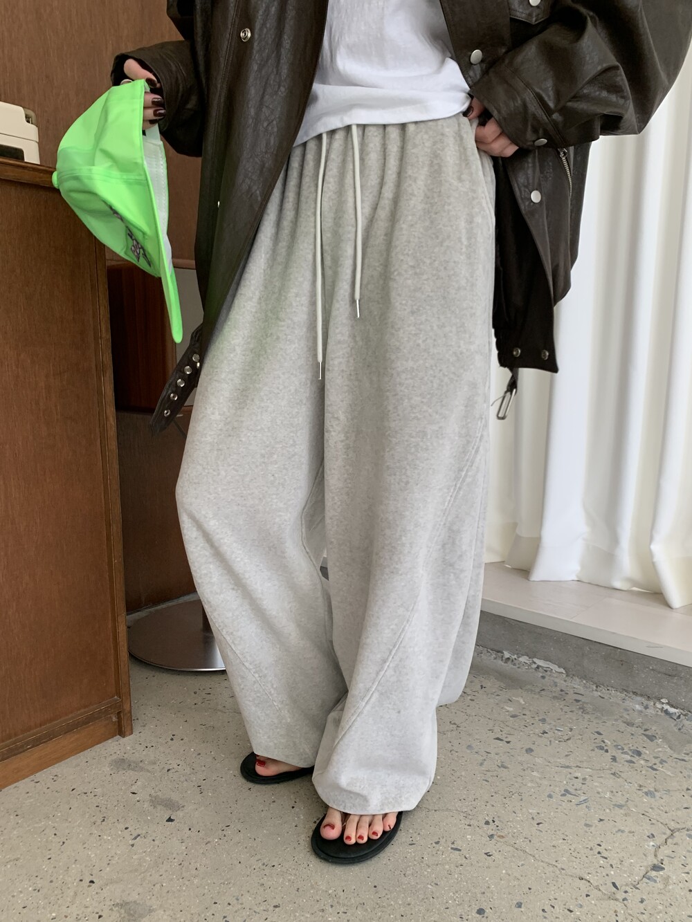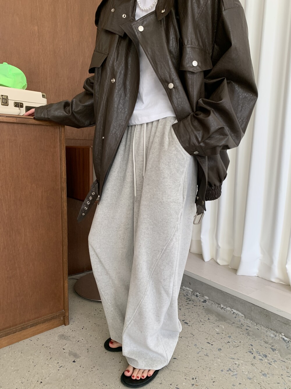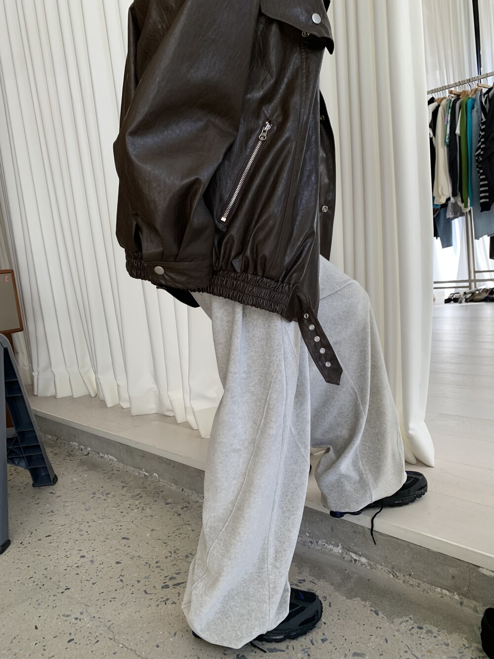 [bp made] velour hip two-way pt (white melange)
